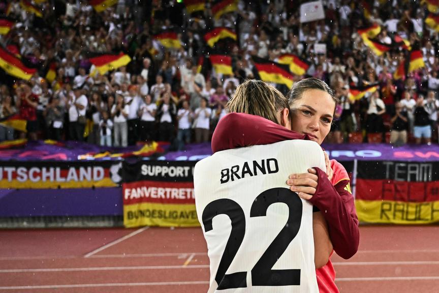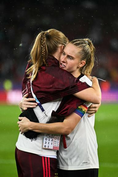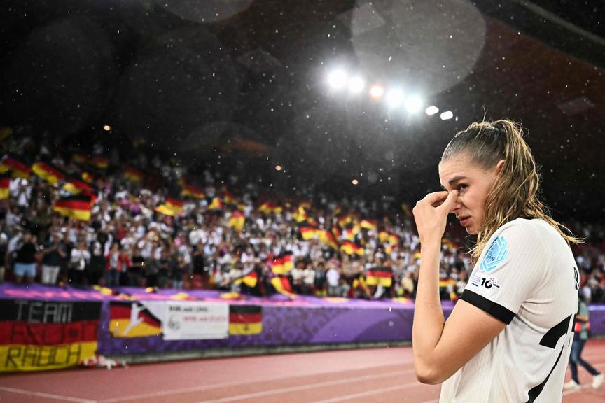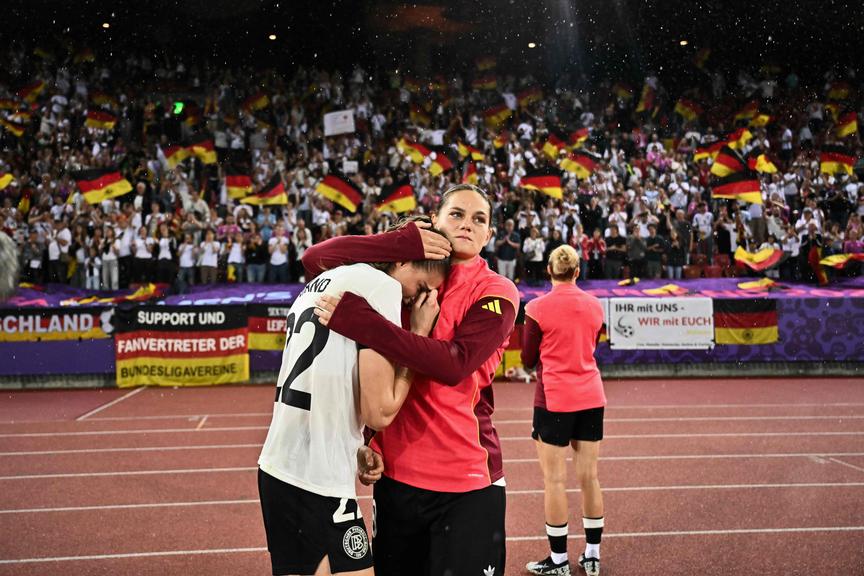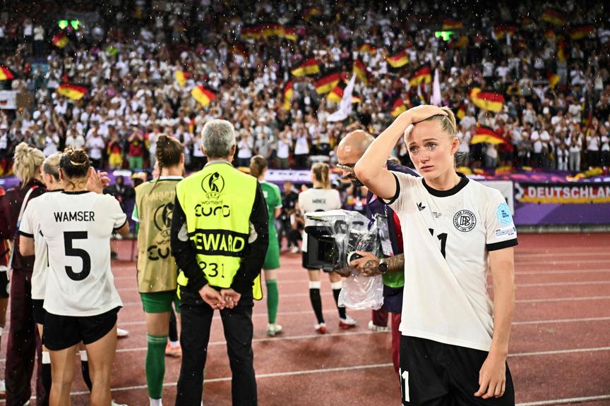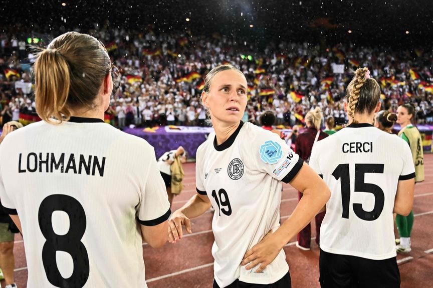 Im Endspiel geht es am Sonntag (18.00 Uhr) in Basel gegen Titelverteidiger England. Für die deutsche Auswahl gibt es keine Revanche für die Endspiel-Niederlage 2022 in Wembley gegen die "Lionesses". Berger sagte: "Natürlich ist die Enttäuschung richtig groß. Wir haben bis zur letzten Sekunde alles gegeben. Ein kleiner Fehler - das ist umso bitterer. Es ist einfach nur Enttäuschung."