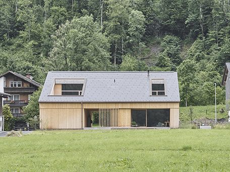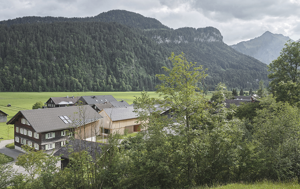 Zuerst war der Ort, dann kam das Haus. Architekt Bernardo Bader ersetzte ein baufälliges Bauernhaus in Bizau durch ein neues, das sich an die baulichen Gesetzmäßigkeiten des Ortes hält. Großteils gleich groß, großteils aus Holz, großteils mit Satteldach, den First parallel zur Straße, bilden alle Häuser gemeinsam den Charakter der Ortschaft. Wie ein Passstück fügt sich der Neubau mit dem Schirm aus unbehandelter Fichte in das Gefüge des Unterdorfs und macht es noch schöner.