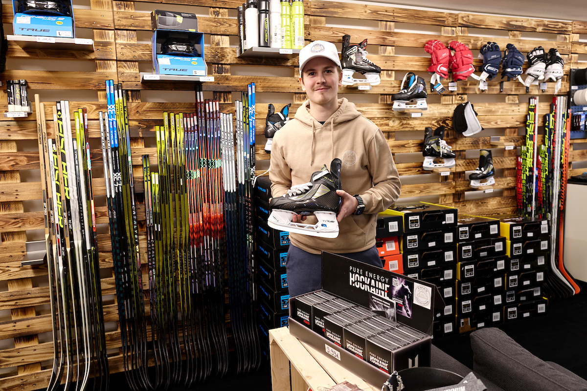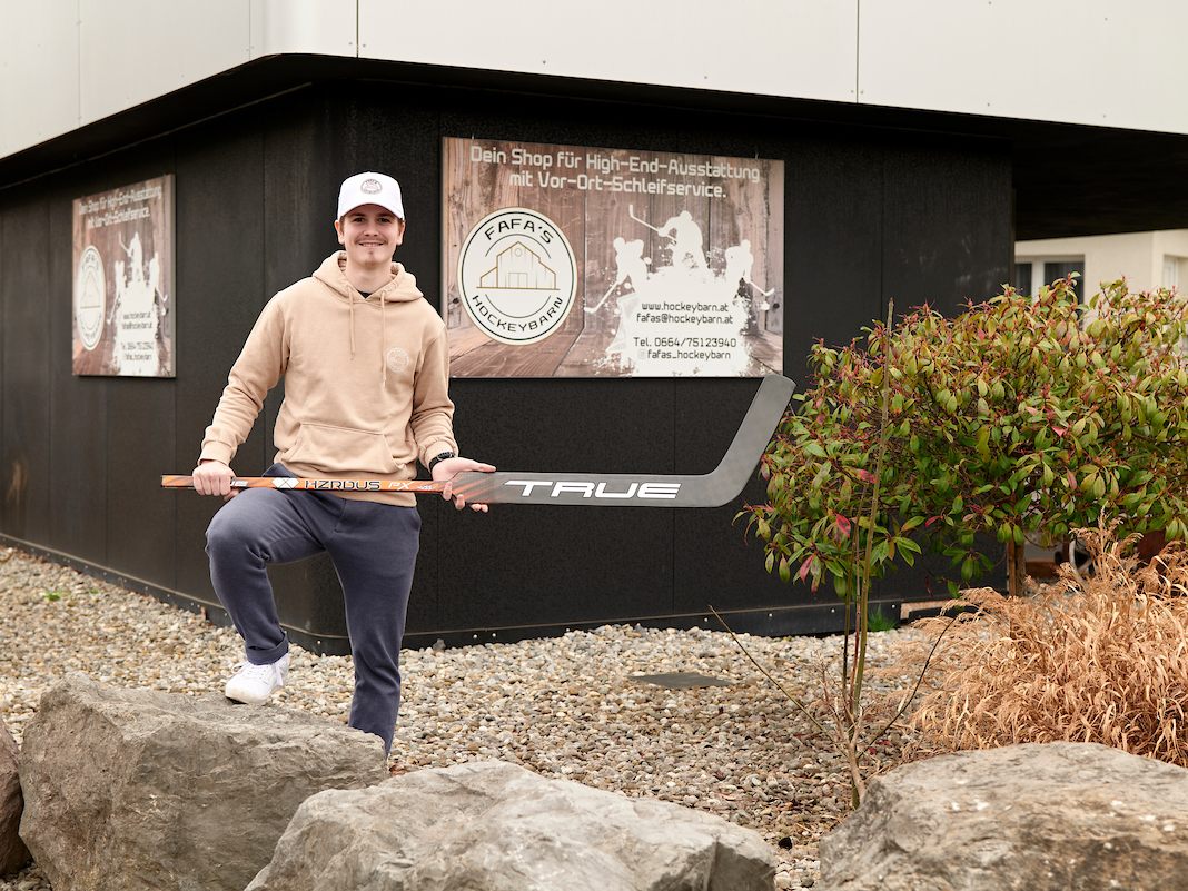Trotz seines jungen Alters von 21 Jahren hat der Jungunternehmer schon einiges zu erzählen. War er doch schon drei Jahre in den USA für diverse Hockeyvereine auf dem Eis und hat dadurch schon einiges erlebt. Im Frühjahr 2023 hat es ihn wieder nach Lustenau gezogen, aktuell steht er bei der VEU Feldkirch im Tor und kann so seine größte Leidenschaft ausüben. Für die trainingsfreie Zeit hat Fabian „Fafa´s Hockeybarn“ in der Brändlestraße 36a in Lustenau gegründet. In seinem Geschäft mit Scheunencharakter findet jede:r Hockeyspieler:in das passende Equipment fürs Eis. Das Angebot reicht vom richtigen Schläger, über diverse Helme, zu passgenauen Schlittschuhen bis hin zur Schutzkleidung und dem entsprechenden Zubehör. Der ambitionierte Goalie möchte mit seinem Geschäft zum Treffpunkt für Hockeyinteressierte werden. „Meine Kundinnen und Kunden sollen sich hier treffen, austauschen und unterhalten können“, erklärt der Eishockeyspezialist voller Elan.
