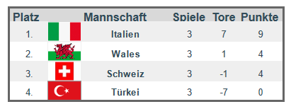 Der Spielplan für Italien, Türkei, Wales und Schweiz in der Gruppe A bei der Fußball-EM 2021. Alle Spiele, Ergebnisse und die aktuelle Tabelle auf einen Blick.