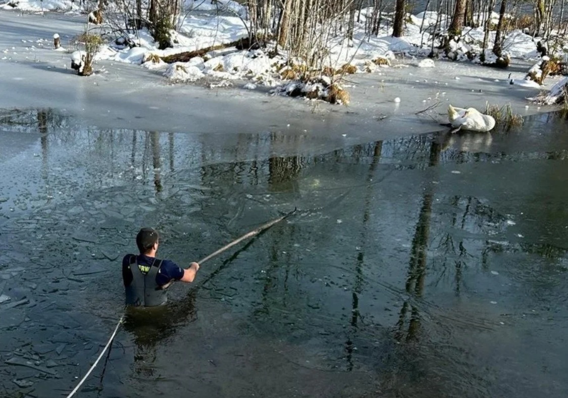 In the morning, the emergency services managed to break the ice towards the shore and drive the swan there. It was captured on the shore, examined by wildlife biologists, and then released back into the wild.