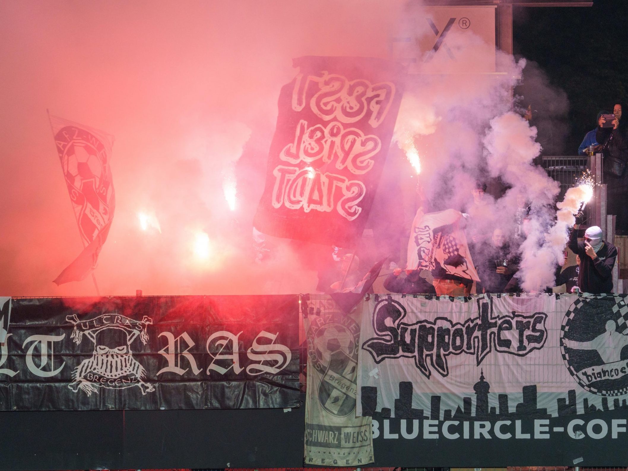 Obwohl SW Bregenz im eigenen Stadion spielt, müssen die Fans das Match aber vom Gästesektor aus verfolgen. Sie treffen sich vor dem 90. Derby in ihrem Klubheim. "Anschließend ziehen wir gemeinsam in die seeseitige Kurve", lassen die Bregenzer Fans wissen. "Alle mit Schal – alle gemeinsam!", schreibt die Szene Bregenz auf Social Media und gibt damit möglicherweise einen kleinen Hinweis auf eine geplante Fan-Choreografie.