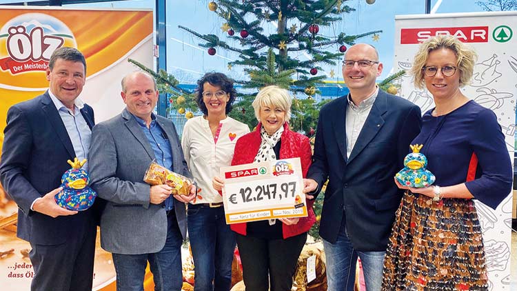 Über den Zeitraum von drei Monaten konnten SPAR-Kunden durch den Kauf von ausgewählten Ölz-Produkten Gutes tun und Gutes einkaufen. Der Ölz Meisterbäcker und SPAR Vorarlberg konnten durch diese Aktion im EUROSPAR Dornbirn-Schwefel einen Scheck über 12.247 Euro an die Hilfsorganisation „Netz für Kinder“ übergeben.