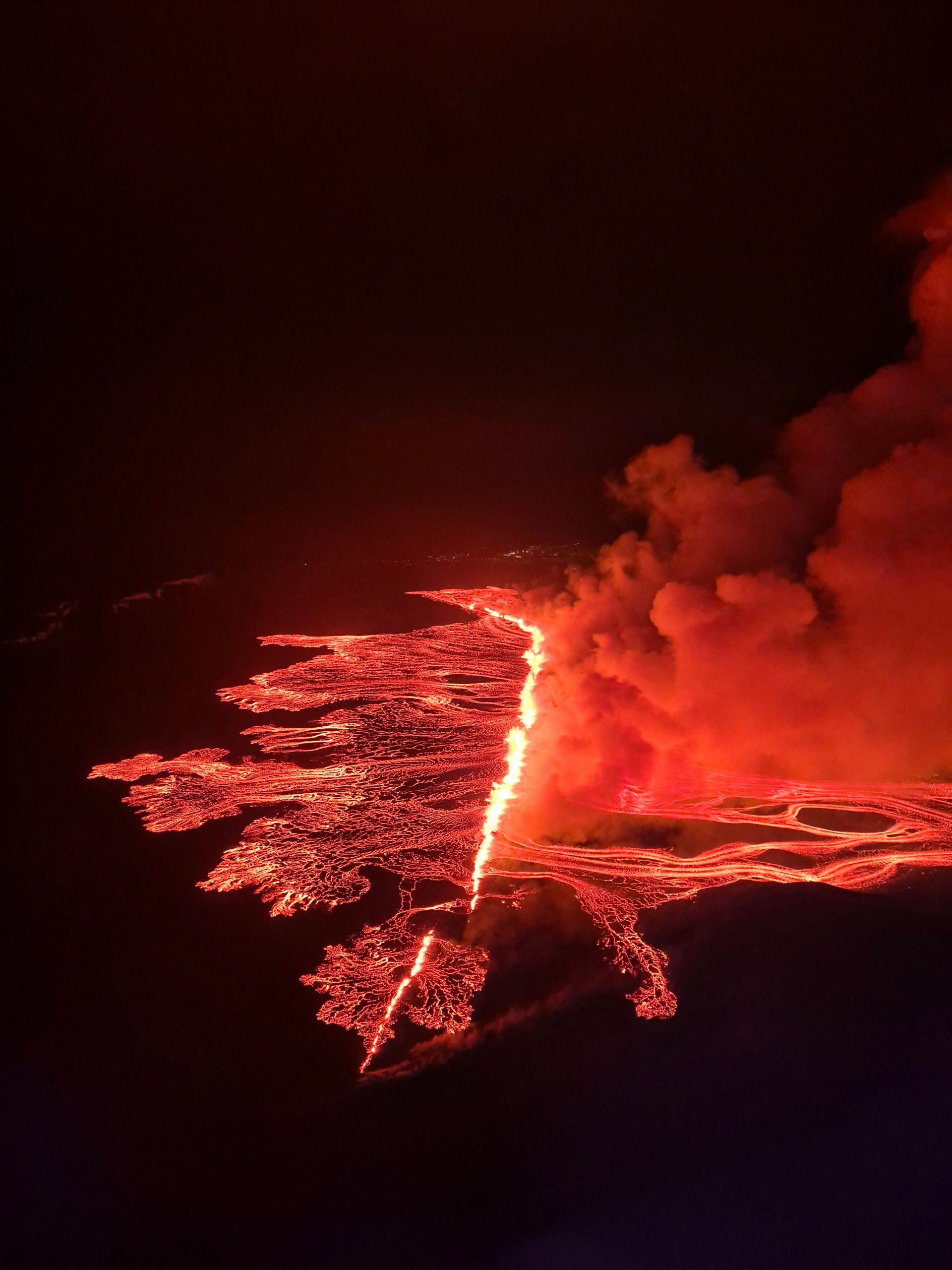 Am Samstagabend war es zum vierten Mal in vier Monaten nahe dem Hafenort Grindavík auf der Reykjanes-Halbinsel zu einem Vulkanausbruch gekommen. Dabei handelt es sich um sogenannte Spaltausbrüche, bei denen es normalerweise keine großen Explosionen oder nennenswerte Ausbreitung von Asche gibt. Die leuchtend rot-orangefarbenen Eruptionen waren dennoch auch von der Hauptstadt Reykjavik aus zu sehen, die etwa 55 Kilometer nordöstlich von Grindavík liegt.