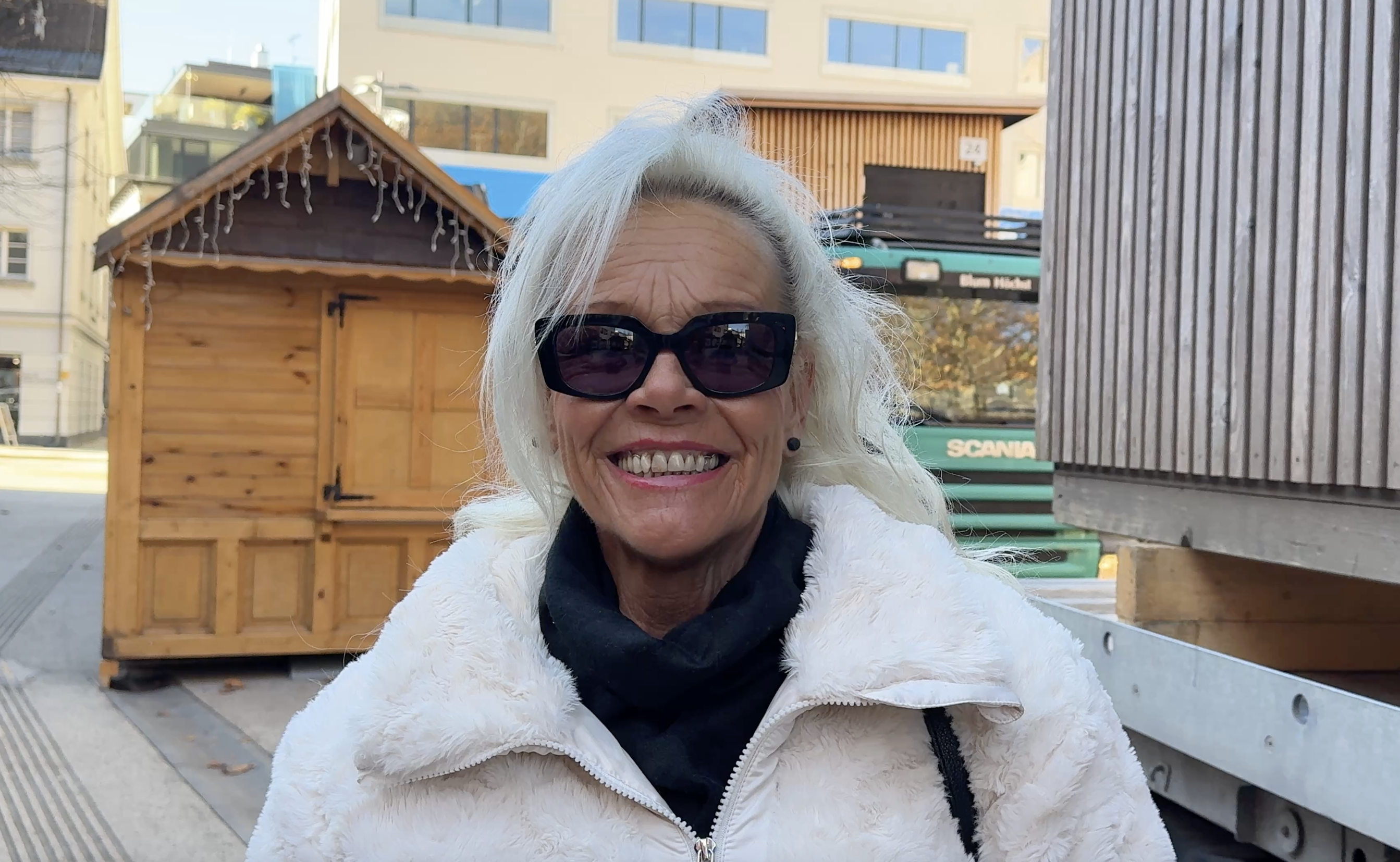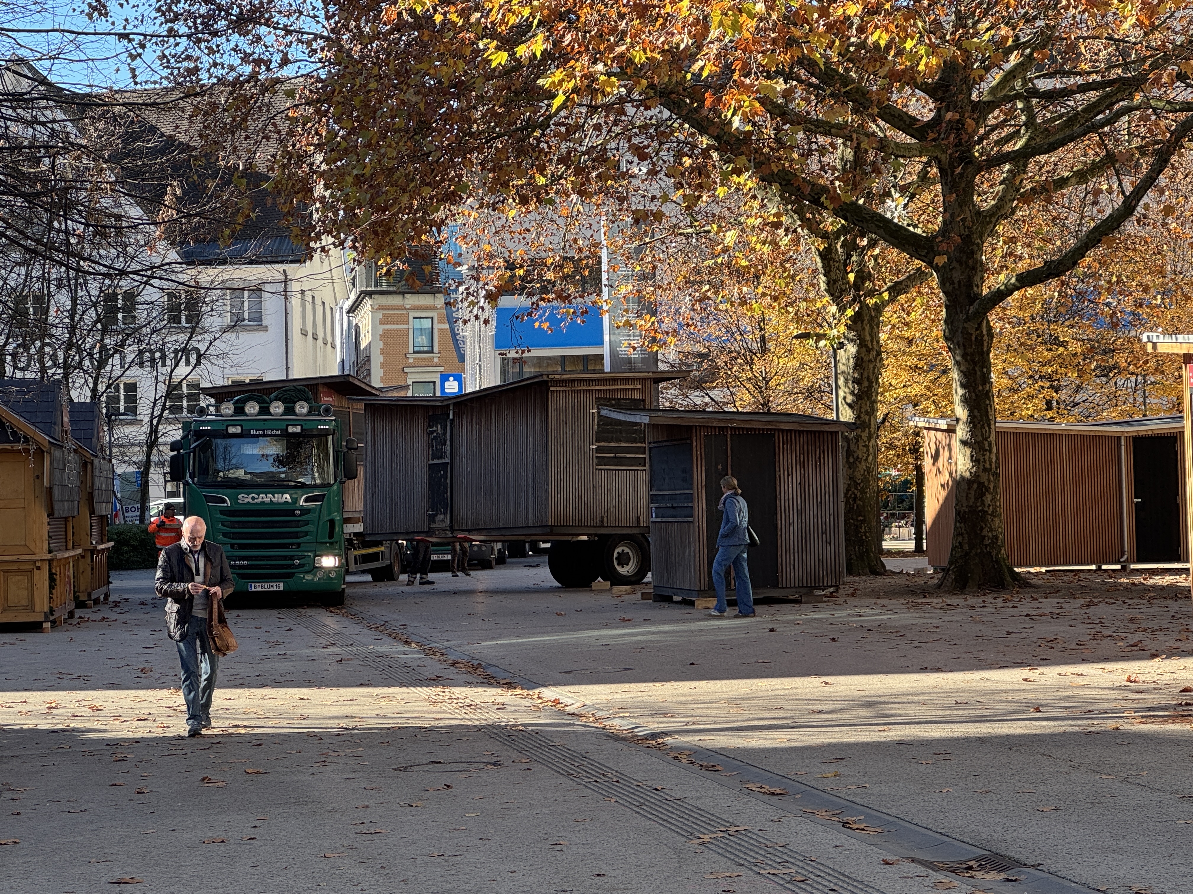 Einige Passanten bleiben stehen, schauen zu und finden: Der frühe Start ist völlig in Ordnung. "So ein Weihnachtsmarkt ist viel Arbeit, bis man das alles erledigt hat. Mich stört das gar nicht", sagt Roswitha Bauer, die zufällig vorbeikommt. Dass es noch herbstlich wirkt, stört sie nicht im Geringsten: "Mich stört eher, dass es zu Weihnachten dann schon die Osterhasen gibt – das andere nicht." Für sie gehört der frühe Aufbau einfach zur Vorbereitung: "Es braucht seine Zeit, wenn man aufbaut, und sie sollen das in Ruhe und schön machen."