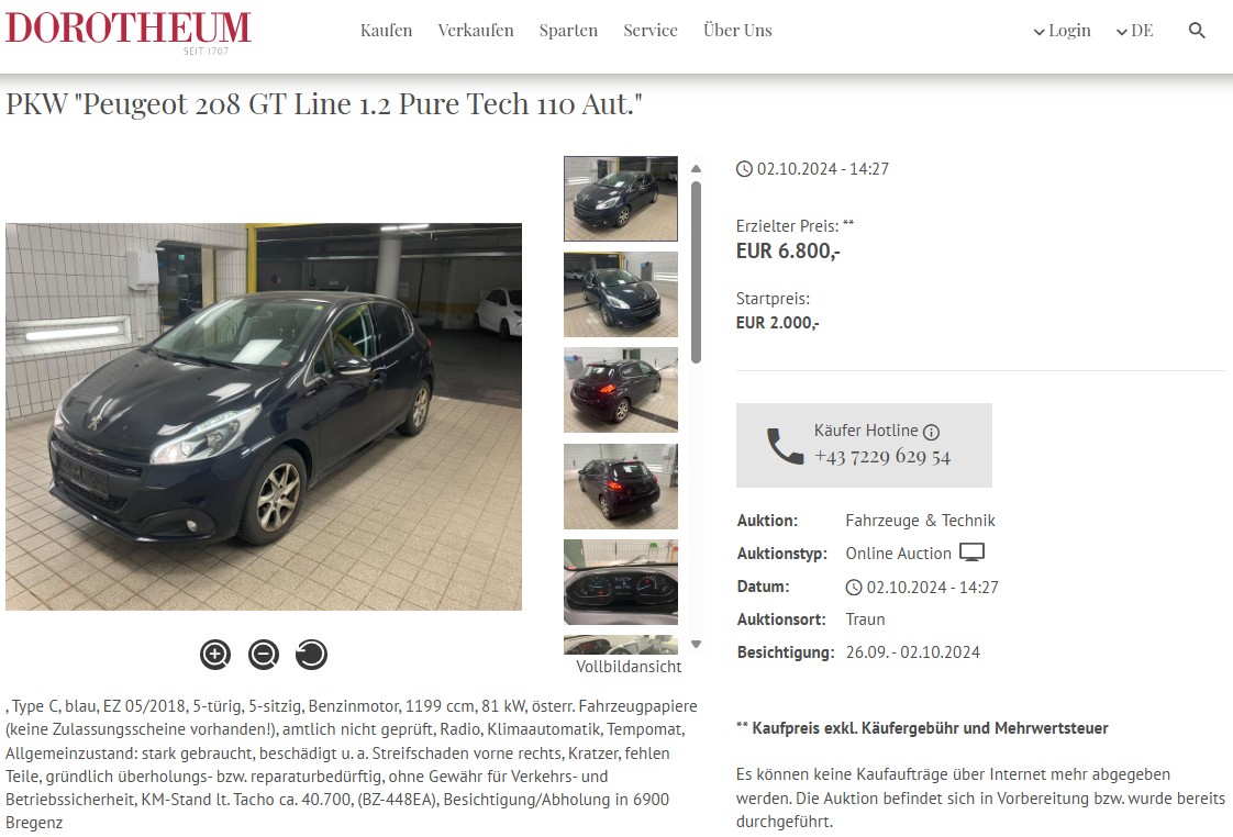 Erstes versteigertes Auto: Ein Peugeot 208 aus Vorarlberg