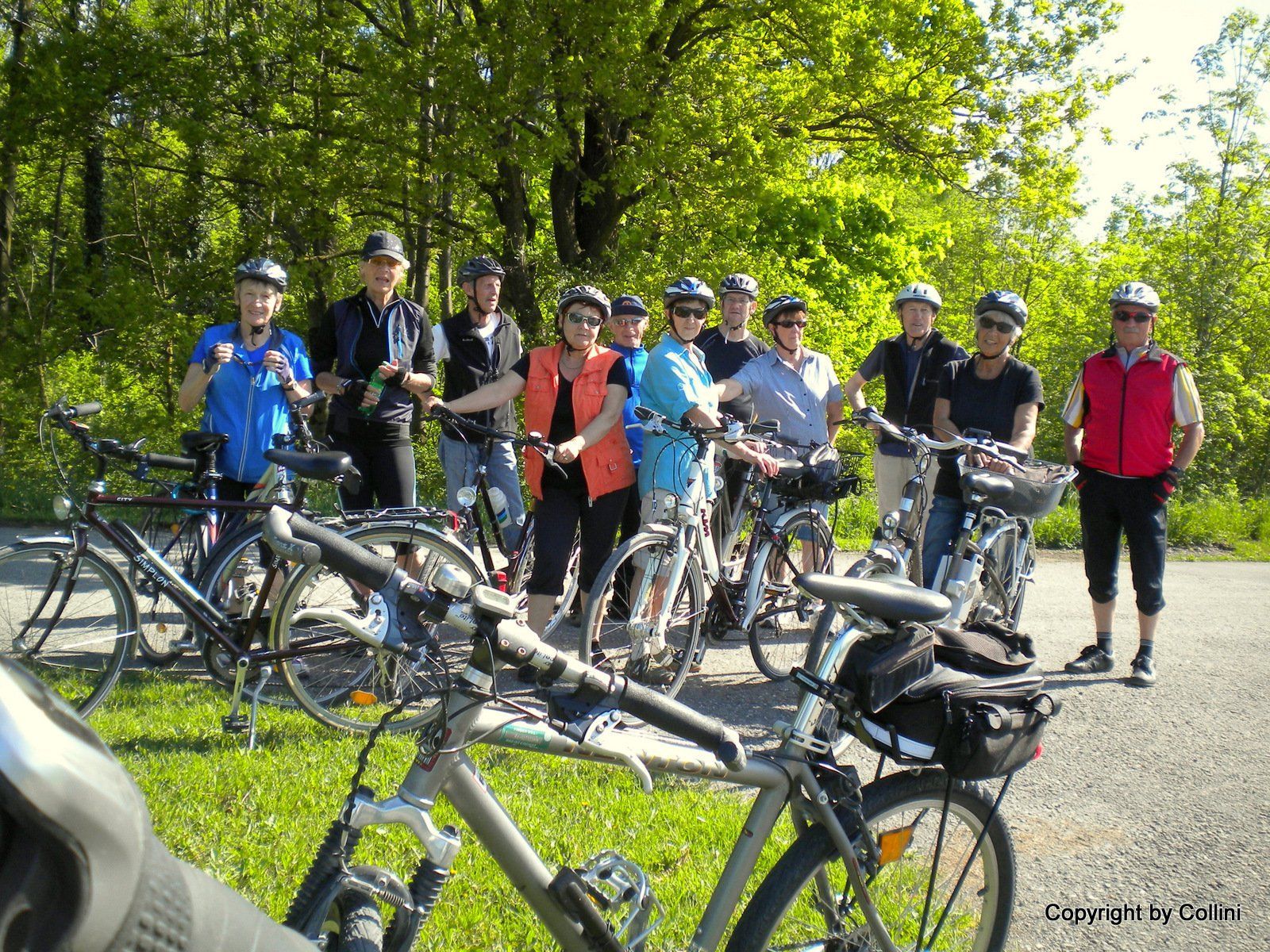Hier fand unser Rudi einen schönen Radweg entlang des Ardetzenberges und der Ill nach Nofels zu unserem Ziel, dem Gasthaus Sternen in Bangs. Im schönen Gastgarten löschten wir unseren Durst. Von hier wechselten wir über die Grenze in die Schweiz und strampelten durch Rüthi und entlang vom Kanal zurück nach Oberriet. Wir überquerten wieder den Rhein und auf dem Rheindamm erreichten wir die Frutzmündung. Nach einer kurzen Fotopause nahmen wir das letzte Stück entlang der Frutz in Angriff. Nach ca. 35 km waren wir wieder bei unserem Ausgangspunkt. Wir bedanken uns bei Rudi für die gute Tourführung auf neuen interessanten Radwegen.