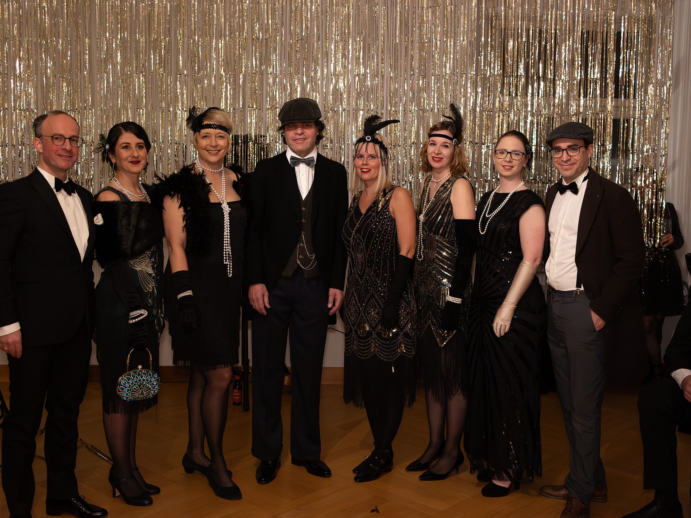 Der Dresscode „Dandy, Dietrich und Flapper“ wurde mit Begeisterung aufgenommen: Gäste in eleganten Anzügen, schillernden Paillettenroben, Federboas und Perlenketten unterstrichen den authentischen 20er-Jahre-Look des Abends und sorgten für authentisches Flair und Glamour. Passend dazu verwandelte sich auch das Palais in eine Bühne für zeitlose Eleganz und ausgelassene Lebensfreude.