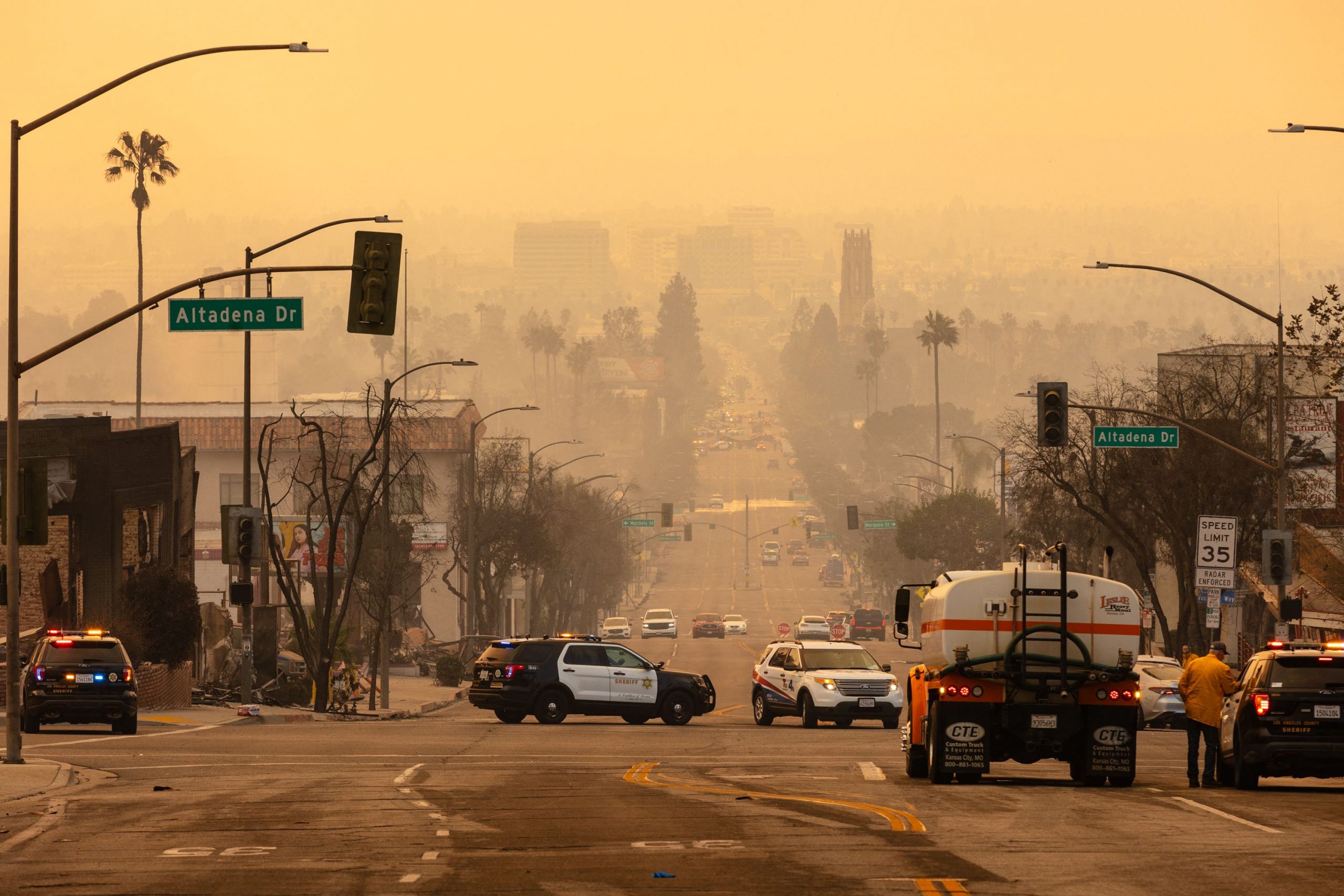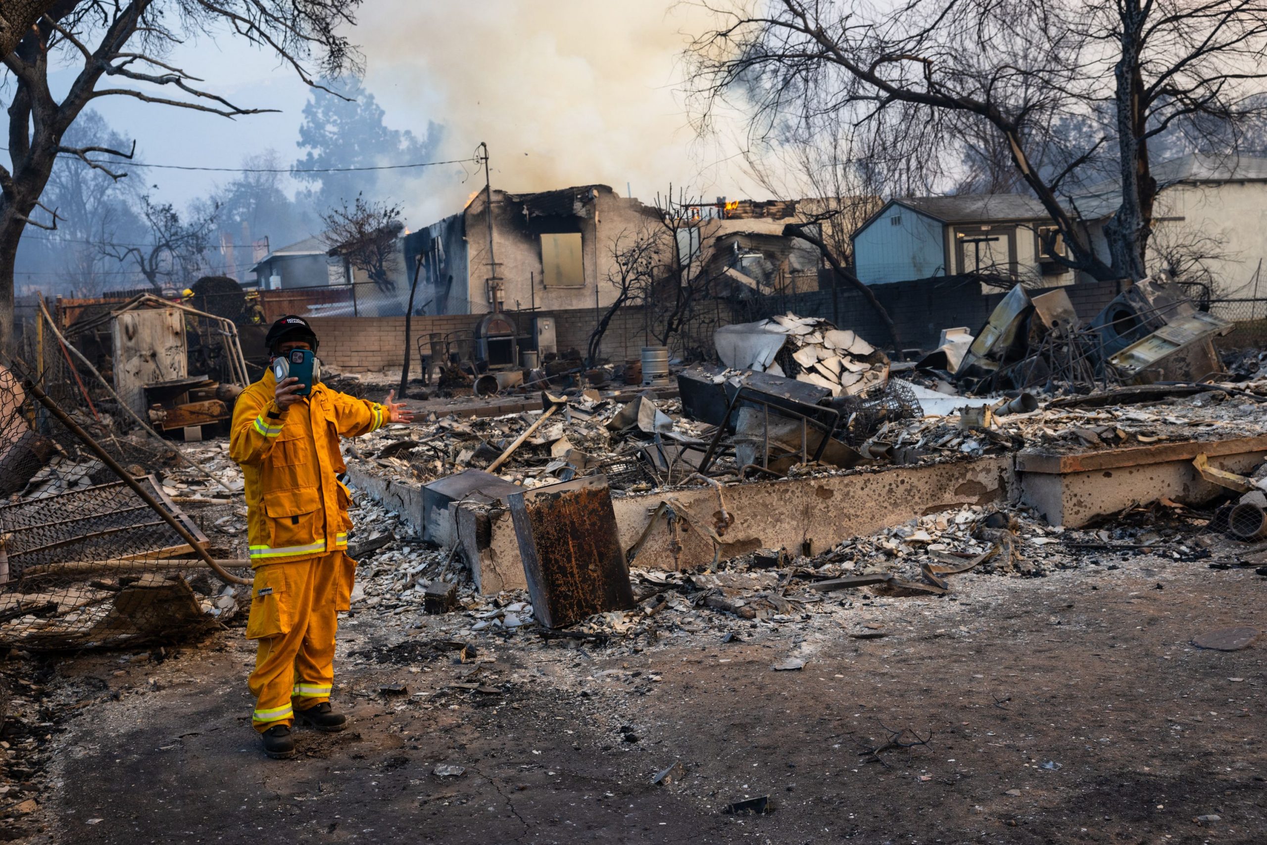 Es sehe aus, als ob "eine Atombombe in diesen Gebieten abgeworfen wurde", sagte der Sheriff des Bezirks Los Angeles, Robert Luna, zur Lage in den betroffenen Regionen. Die Brände sind weiter außer Kontrolle. Nach Angaben von Feuerwehr-Chefin Kristin Crowley verbrannten allein im Viertel Pacific Palisades seit Dienstag mehr als 5.300 Häuser. Beim Eaton Fire nahe Pasadena wurden hingegen bisher etwa 4.000 bis 5.000 Gebäude zerstört oder beschädigt, darunter Ein- und Mehrfamilienhäuser und Gewerbeobjekte, wie Anthony Marrone, Feuerwehrchef von Los Angeles County, bestätigte.