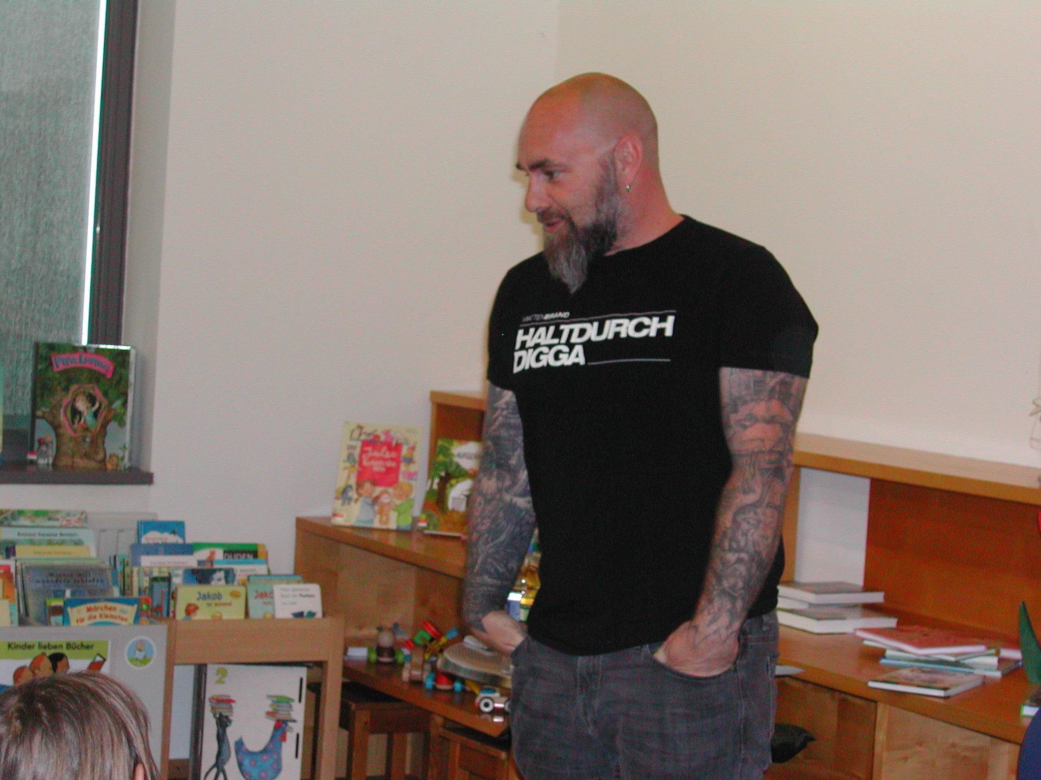 Am Dienstag, dem 15.05.18, waren die dritte und vierte Klasse der Volksschule Muntlix in die Bücherei Muntlix eingeladen. 29 Mädchen und Buben kamen gerne mit ihren Lehrerinnen. Der Kinder- und Jugendbuchautor Kai Lüftner stellte das dritte Buch seiner Trilogie über ” Die Finstersteins ” vor. Der 43-jährige Berliner, der mit seiner Frau und einem Sohn in Berlin Köpenick lebt, ist studierter Sozialpädagoge. In seiner Freizeit betreibt er Kampfsport, engagiert sich für den Tierschutz und lässt sich gerne tätowieren. Er verstand es großartig, die Schüler/Innen mit schauspielerischem Talent, durch Geräusche, Gesten und sein lebendiges Vorlesen, in seinen Bann zu ziehen. Mit Begeisterung wurden anschließend Autogramme geholt. Die drei Bücher und die Hör-CD sind demnächst zur Ausleihe bereit.
