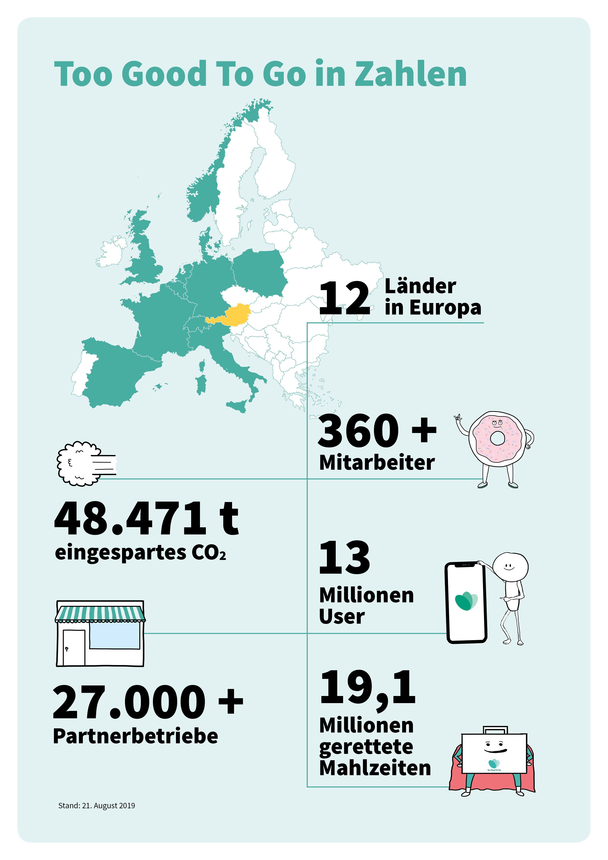 Dass das Konzept aufgeht, belegen die Zahlen des 2015 in Dänemark initiierten Tech-Start-ups, das mit Österreich nun in 12 Ländern aktiv ist. Die App wurde rund 13 Millionen Mal weltweit installiert. Über 28.000 gastronomische Betriebe sind bereits dabei. Das Ergebnis kann sich sehen lassen: Seit Anfang 2016 wurden weltweit über 20 Millionen Mahlzeiten gerettet. Eine Erfolgsgeschichte, die Too Good To Go jetzt in Österreich fortsetzt. Die App ist nun auch in österreichischen App-Stores verfügbar. Die ersten 50 Partnerbetriebe aus Wien sind bereits freigeschalten und bieten ihre wertvollen Überschüsse täglich an.