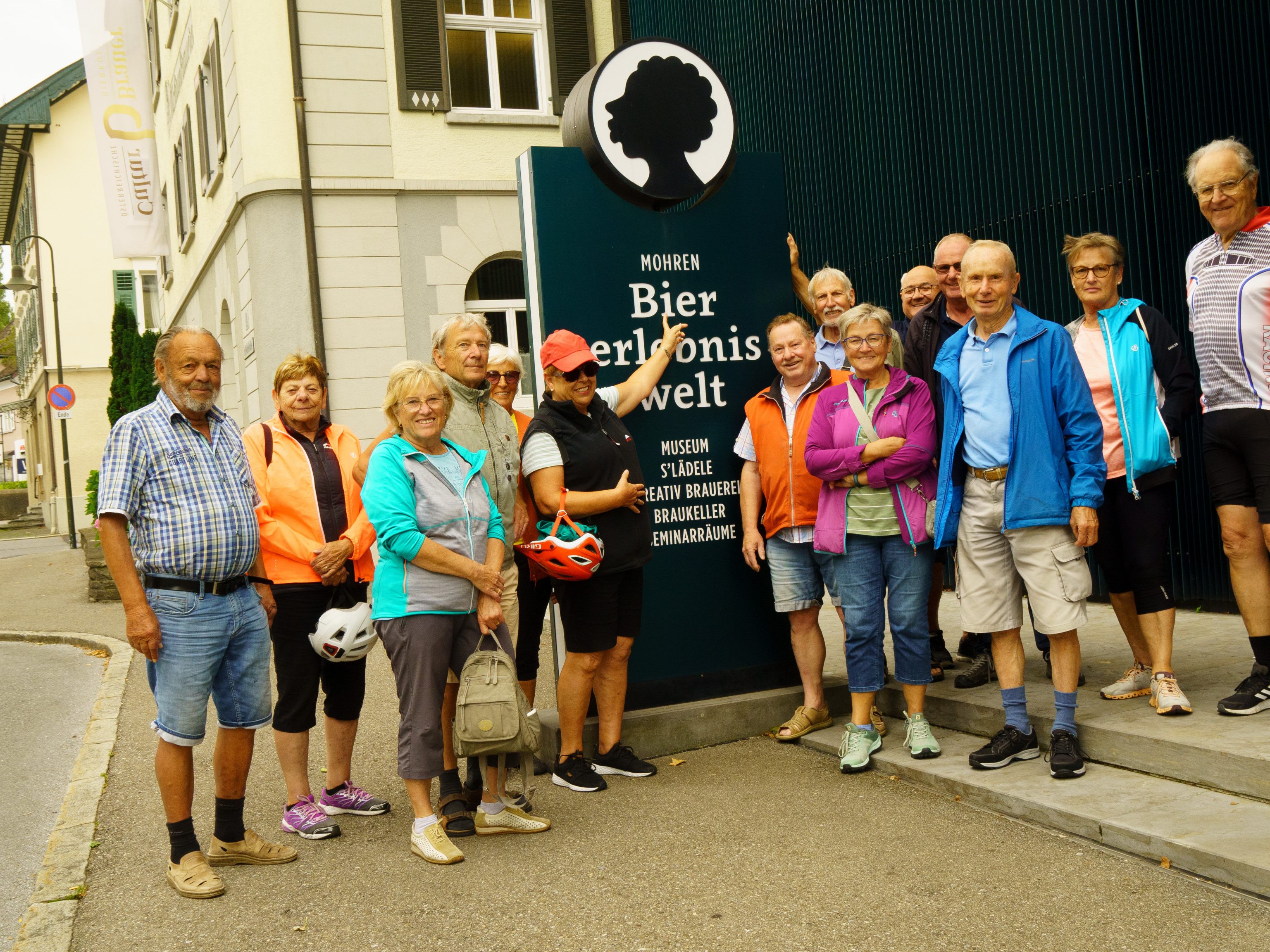 Mit einem Glas Bier beendeten wir den Besuch und begaben uns auf den Heimweg über Mühlebach, Hatlerdorf und Wiesenrain in Lustenau nach Höchst. Wir waren 15 Teilnehmer und sind 40 Kilometer überwiegend auf Nebenstrassen gefahren.