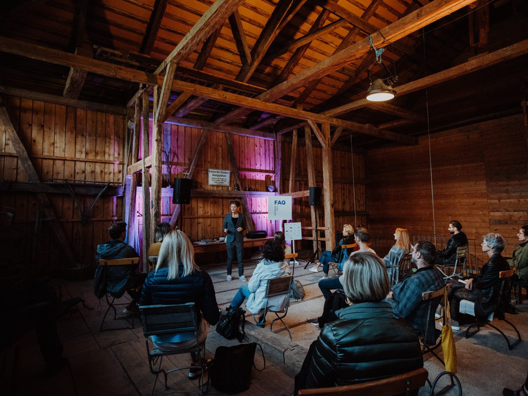 Bei „Wer spricht?“ wurde es stimmgewaltig, als Sprachkünstler Christian Reiner mit Atemübungen und artikulatorischen Kniffen unsere TeilnehmerInnen anleitete, ihre eigene – selbstbewusste! – Stimme zu erfahren und wirkungsvoll einzusetzen. Hört, hört!