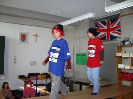 Begleitet von Musik und Moderator(inn)en präsentierten die Nachwuchsmodels ihre Kleidung auf dem catwalk im Englischraum. So macht Unterricht natürlich Spaß, waren sich die Schüler(innen) einig.