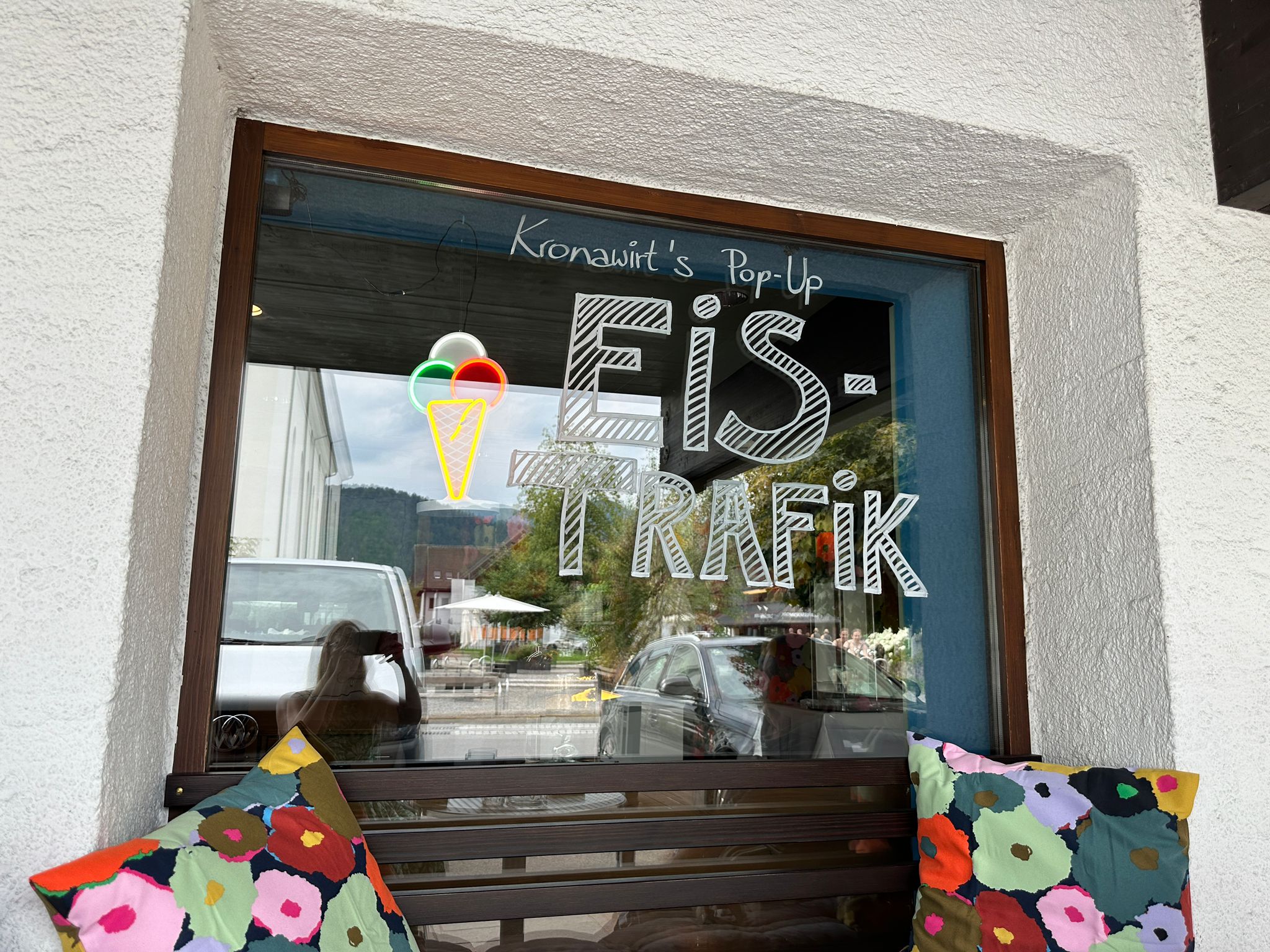 Die "Eis-Trafik", also eine richtige Eisdiele, das gab es in dieser Form bisher noch nicht im vorderen Bregenzerwald, auch, wenn es mehrere Orte gab, an denen man ein Eis essen konnte. Es sei schön, dass es unterschiedliche Angebote gebe, meint Nußbaumer: "Wir haben Mittwoch und Donnerstag Ruhetag, weil dann hat gegenüber die Bäckerei Alber offen. Dafür haben wir Samstag und Sonntag offen, wo wiederum andere zu haben." So gibt es in der Gemeinde immer ein Angebot an Eis, wie er zu verstehen gibt. Der Kronen-Wirt sieht das Eis-Pop-up daher mehr als Ergänzung, denn als Konkurrenz für das Bestehende.