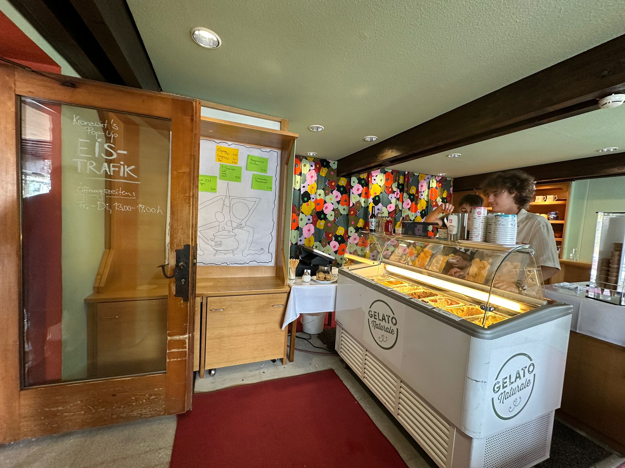 Freitagmittag konnten sich die Bregenzerwälder ein erstes Eis im Untergeschoss der "Krone Hittisau" abholen. Wo bis vor Kurzem noch Zigaretten, Zeitschriften und Co. über den Tresen gingen, wurde umgestaltet. Was früher eine Trafik war, ist jetzt ein beliebter Treffpunkt für alle, die sich an heißen Sommertagen ein leckeres Eis gönnen möchten.