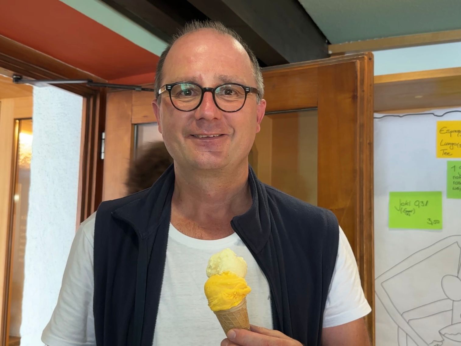 Michael Springer aus Laupheim (D) schaut öfter in Hittisau vorbei. Ihm gefällt das neue Konzept. "Ich habe die Trafik davor schon jahrelang gekannt und jetzt hier für den Dorfplatz eine Eisdiele ist auch ganz gut", so der Gast. Er war beim VOL.AT-Lokalaugenschein gerade auf der Durchreise, um Käse zu kaufen. "Ich mache das immer gerne am Freitagnachmittag. Mache eine Rundfahrt mit dem Cabrio", erzählt er. Ein Eis kommt dann ganz gelegen: "Ja passt heute, bei dem Wetter."