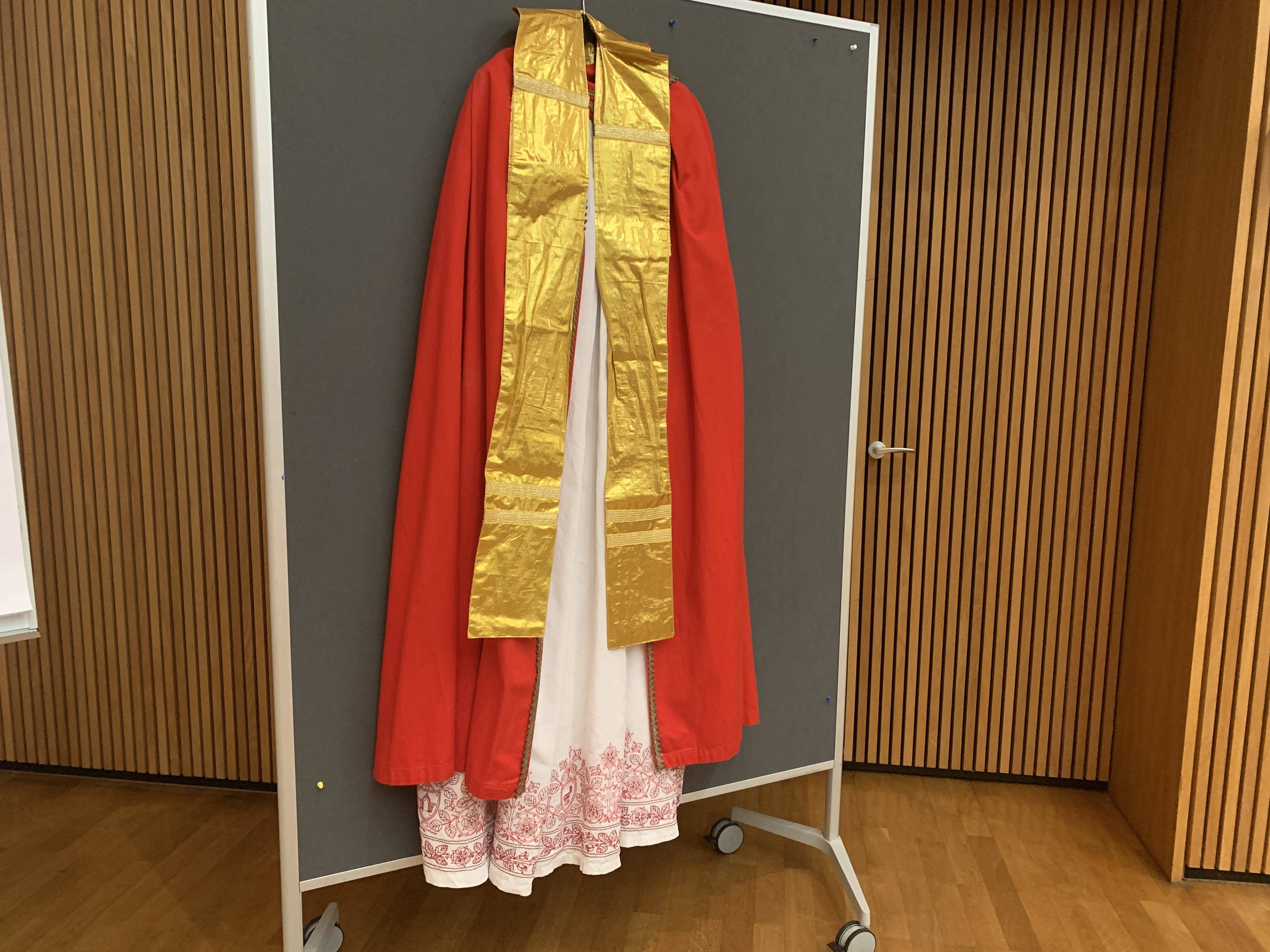 Das Gewand des heiligen Nikolaus hängt zur Anprobe bereit.