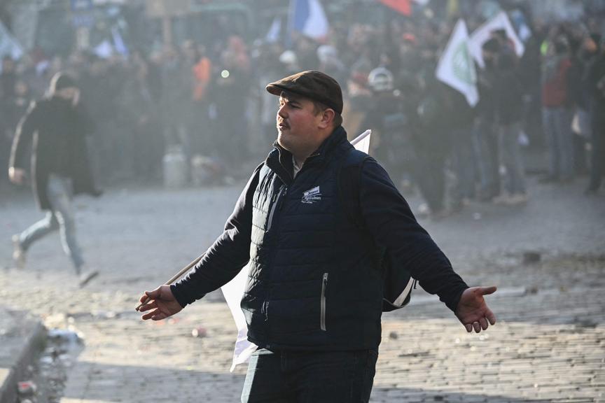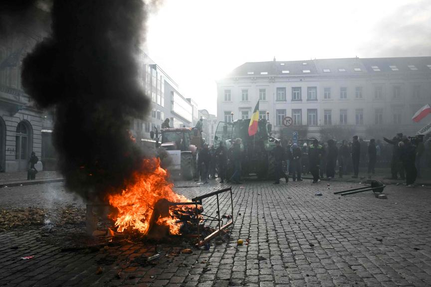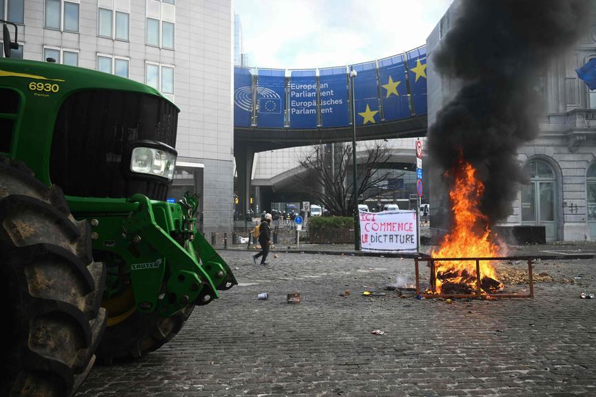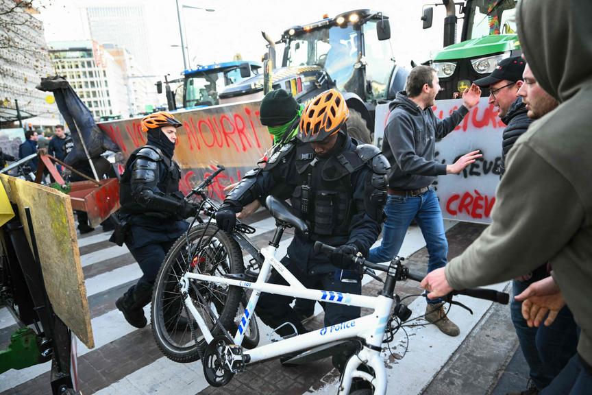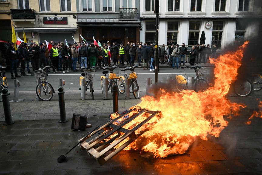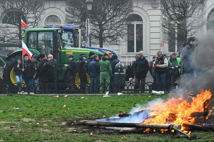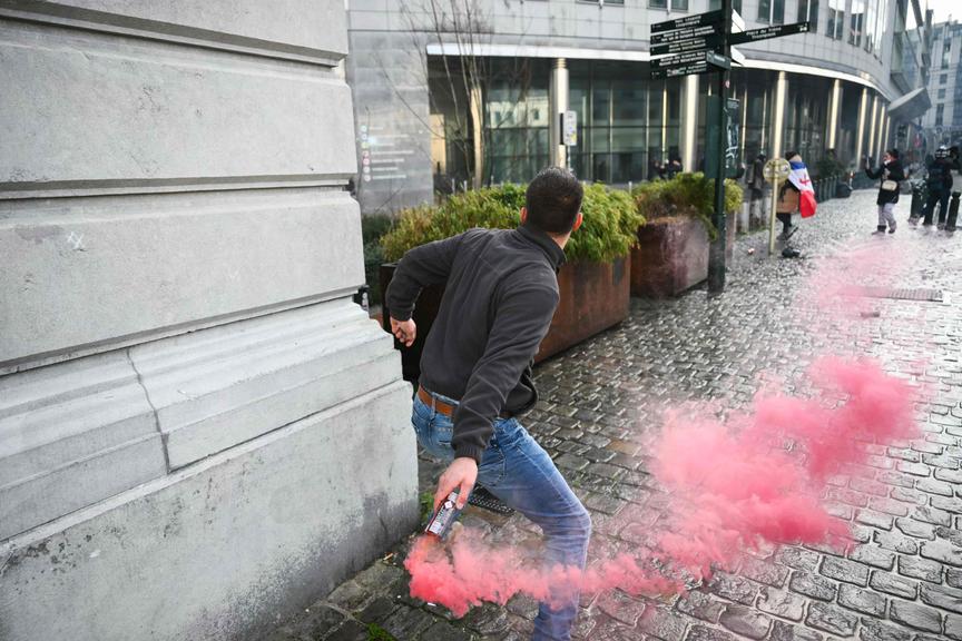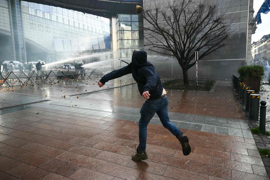Im Europaviertel wurden Wasserwerfer eingesetzt, wie die örtliche Polizei mitteilte. Einige Landwirte hätten versucht, von den Sicherheitskräften eingerichtete Sperren zu überwinden. Zudem wurden Brände gelegt, Pyrotechnik gezündet und Tränengas eingesetzt, wie auf Bildern zu sehen war. Die Angriffe der Demonstranten mit Kartoffeln und Feuerwerk richteten sich auch gegen das Europaparlament.