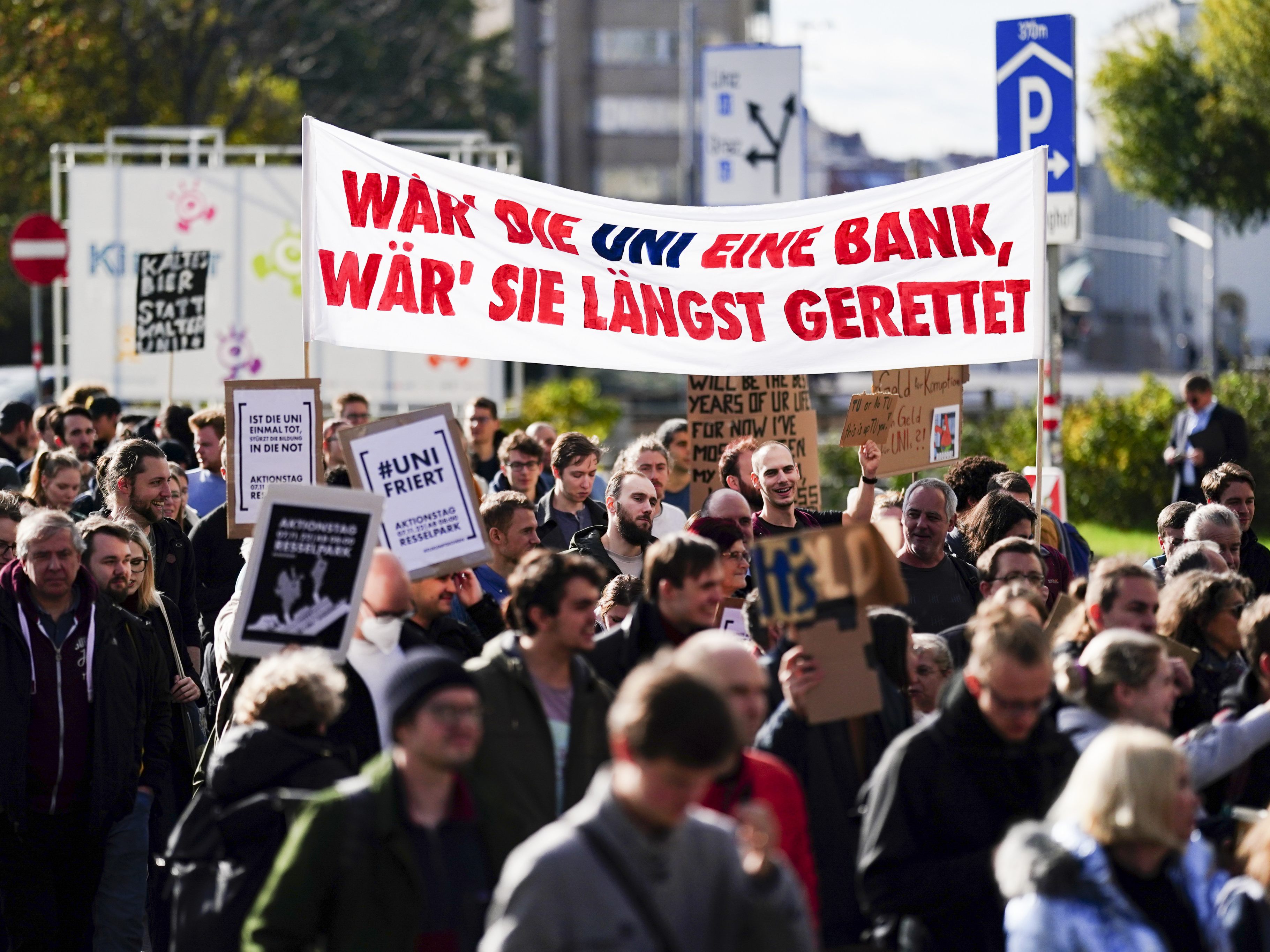 Mehr als 3000 Studierende haben sich am 7. November 2022 die Wiener City in einem Streik blockiert, um über die Folgen der Einsparungen im Rahmen der Energiekrise an den Universitäten zu demonstieren. ©APA/EVA MANHART