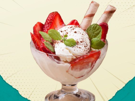 Der Klassiker - Coupe Romanoff - wird mit köstlichem Vanille-Eis an frischen Erdbeeren mit Grand Marnier und reichlich Sahne garniert.