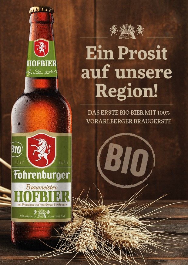 Besonders in der aktuellen Zeit ist es wichtig, regionale Produkte und somit regionale Unternehmen zu unterstützen. Die Brauerei Fohrenburg hat erkannt: Regionalität in Bio-Qualität trifft den Zeitgeist. Das Fohrenburger BRAUMEISTER BIO HOFBIER ist das Erste seiner Art und ein Prosit auf unsere Region. Denn diese Bierspezialität wird zu 100% mit bester BIO Braugerste von Vorarlberger Bauernhöfen eingebraut.