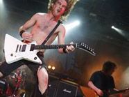 Zuvor versuchte die australische Rock-Truppe Airbourne den Preis für die lauteste Show des Forestglades an sich zu reißen und gewann ohne viel Mühe. Drummer Ryan O’Keeffe war umzingelt von jeweils zwölf Verstärkern auf beiden Seiten. Sein Bruder, Sänger und Gitarrist Joel O’Keeffe, schrie ins Mikro was das Zeug hielt und bewies gekonnt, dass er seine Saiten voll im Griff hat. Schwacher Start, weil die gespielten Gitarrenriffs alles übertönten – auch seinen Gesang. “No Way But The Hard Way” wurde vom Publikum fleißig mitgegrölt. Lustige Einlage von Joel: Der Sänger schmiss sich so lange zwei Bierdosen gegen den Kopf, bis diese platzten und sich eine Fontäne über ihn ergoss.