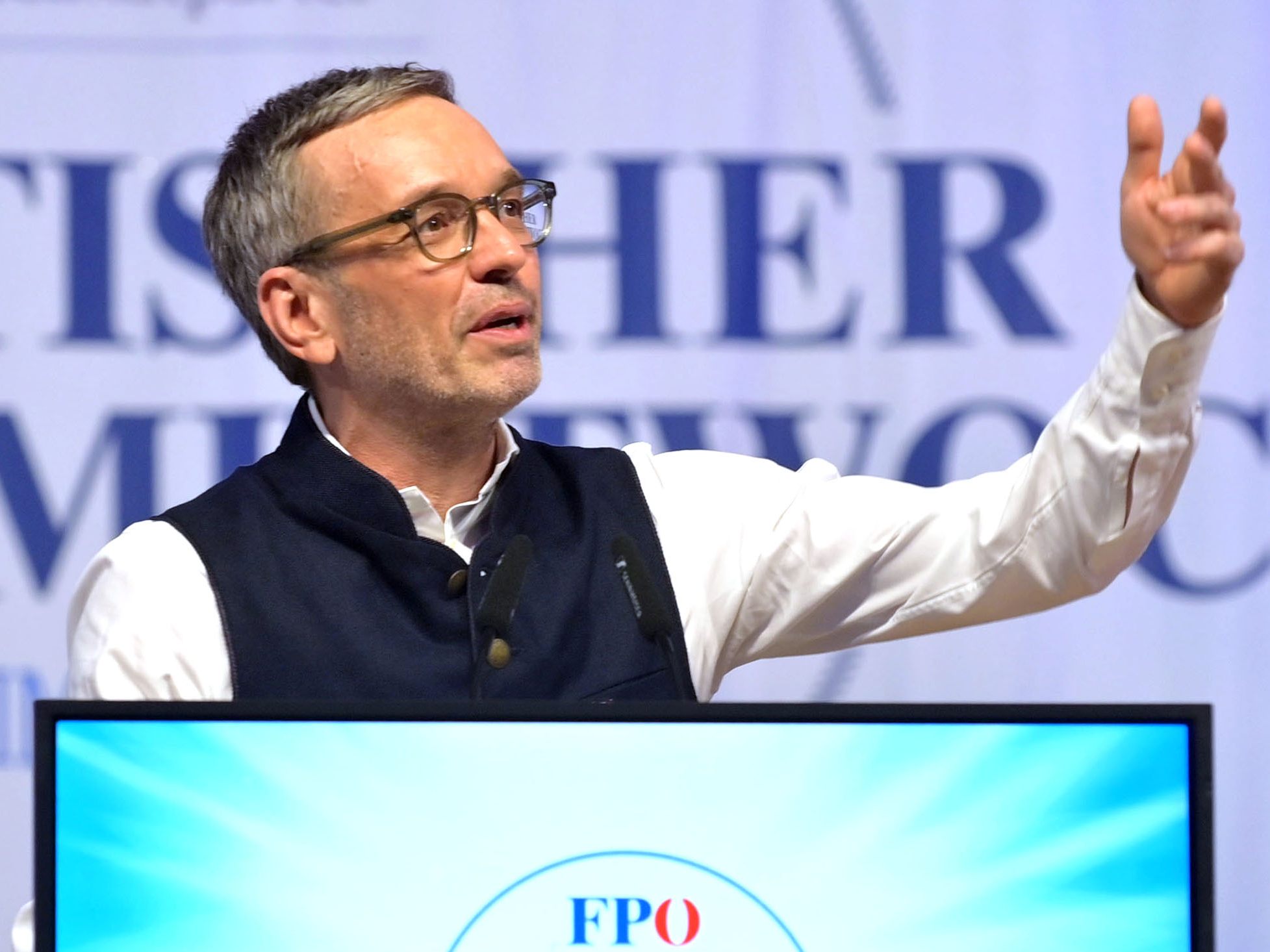 Er arbeitete sich in seiner Rede vor allem an der neuen Regierung aus ÖVP, SPÖ, NEOS ab und kündigte an, immer noch Volkskanzler werden zu wollen und dann "mit dem Kärcher in die letzten Ecken dieser Republik" zu fahren.