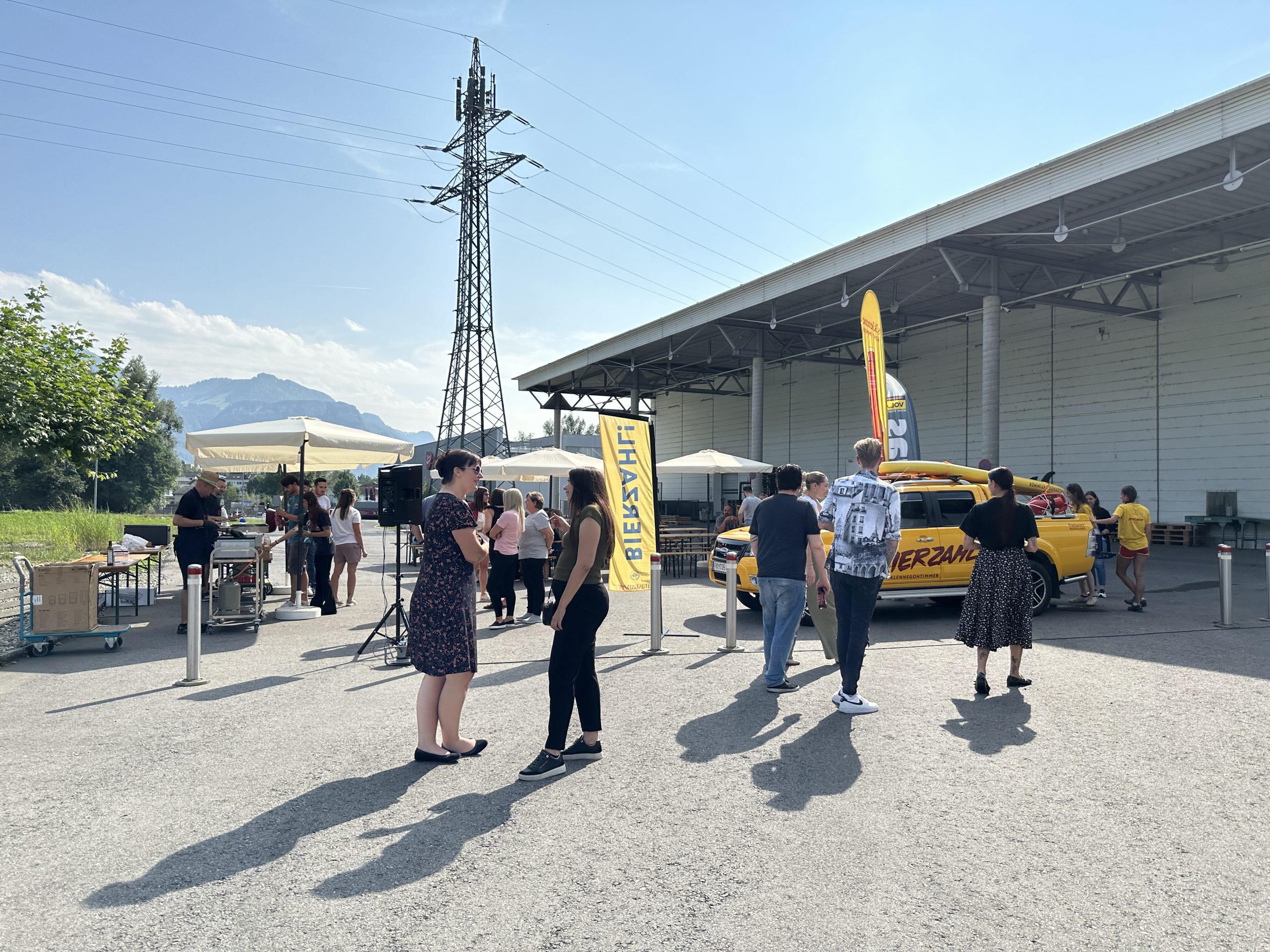 Das Bierzahl-Mobil machte am Donnerstagnachmittag bei Russmedia in Schwarzach Halt. Der Besuch im Rahmen der Bierzahl-Aktion ist mittlerweile schon fast Tradition. Für die Mitarbeiter gab es passende zu Würstle und Co. kühle Getränke von Frastanzer.