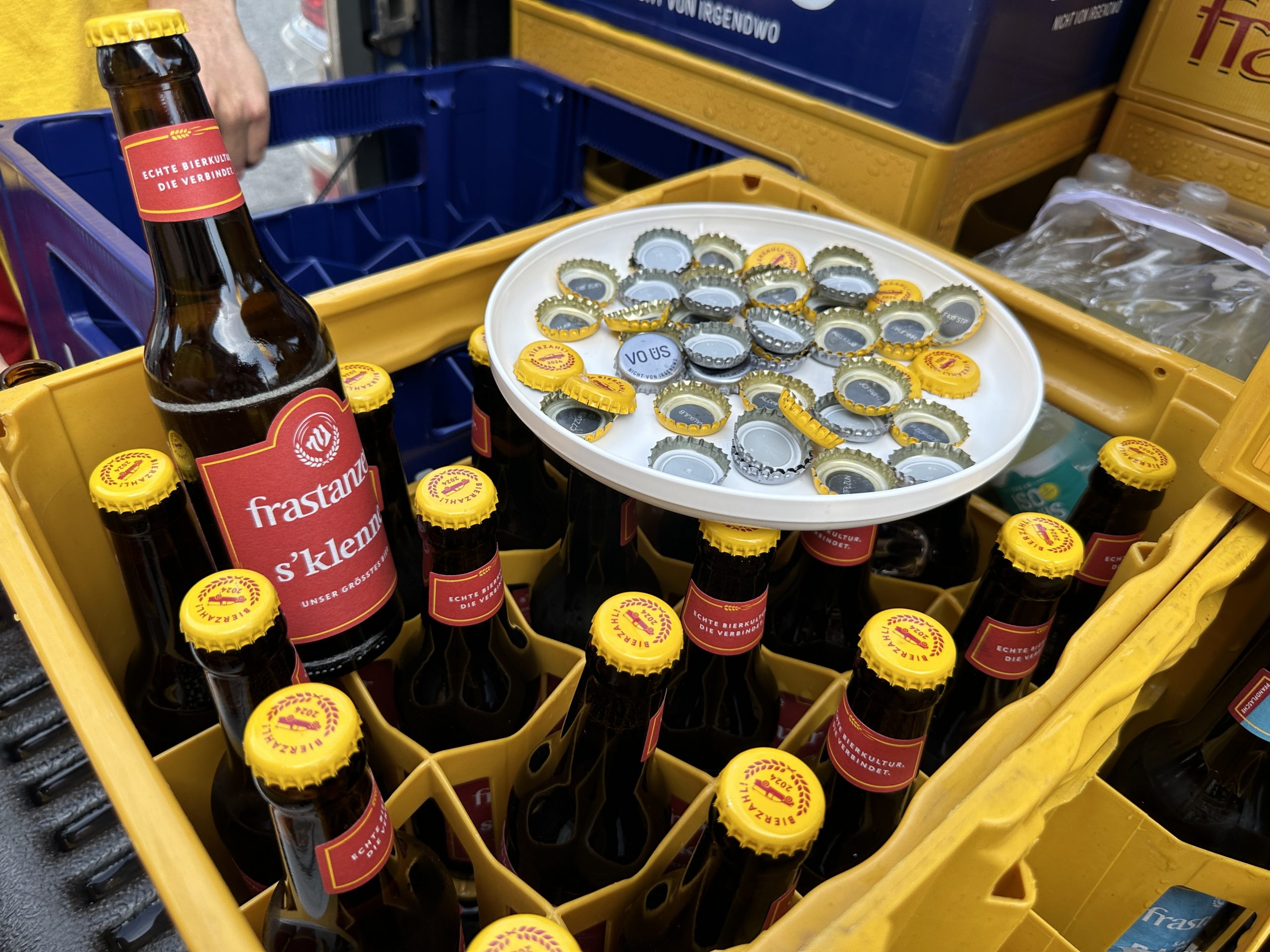 Gemeinsam mit VOL.AT, Antenne Vorarlberg, VÖUS und dem Autohaus Stuhlmayer feiert Frastanzer noch bis am 15. September Bierzahl 2024. Das Prinzip des Bierzahl-Gewinnspiels ist ganz einfach. "s'klenne" genießen, Kronkorken-Codes sammeln und auf bierzahl.vol.at eingeben oder scannen. Es besteht kein Kaufzwang: "Wer kein Bier trinken will, kann natürlich jederzeit Codes bei uns holen kommen", erklärt Mario Rothmund von Frastanzer. Das Bierzahl-Mobil wird unter den 200 Gewinnern der heißbegehrten "Golden Tickets" verlost. Die offizielle Endziehung findet am 15. September im Bockbierzelt der Brauerei Frastanzer statt. Der Gewinner darf dann den großen Festumzug durch Frastanz anführen und darf das Auto für immer behalten.