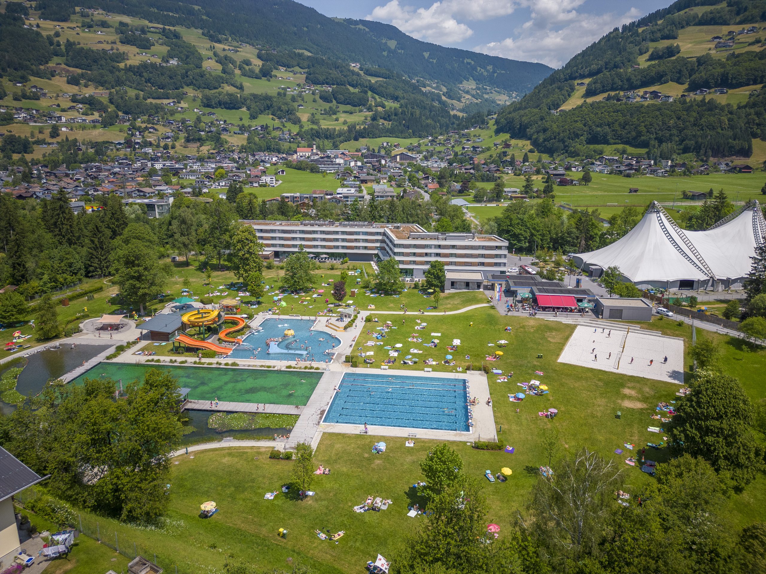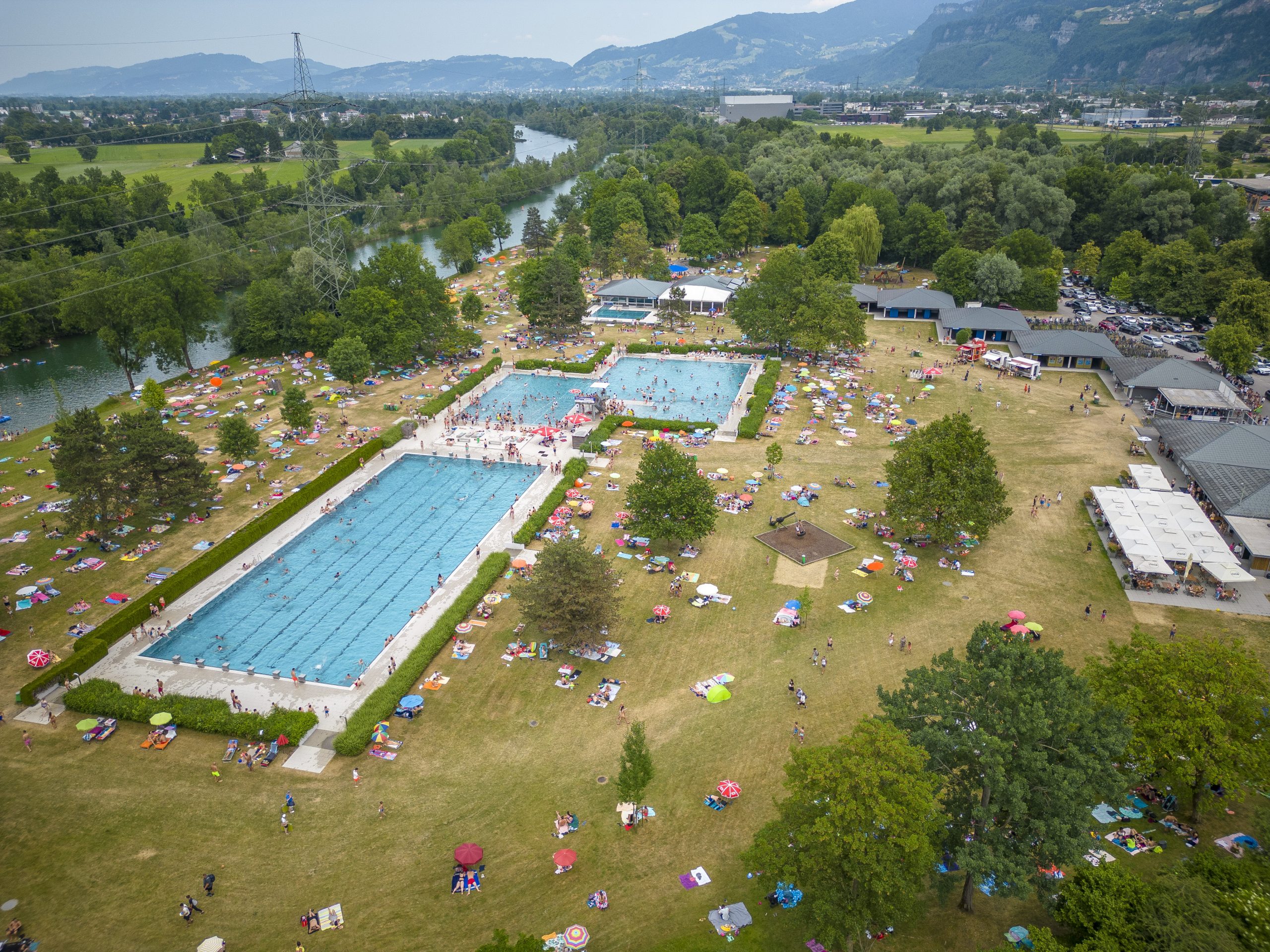 Ein modernes Freibad mit sechs Becken, großem Erlebnisbereich und viel Technik im Hintergrund. Das Bad startet bereits zu Ostern als erstes in Vorarlberg in die Saison und ist bei jeder Witterung geöffnet.
