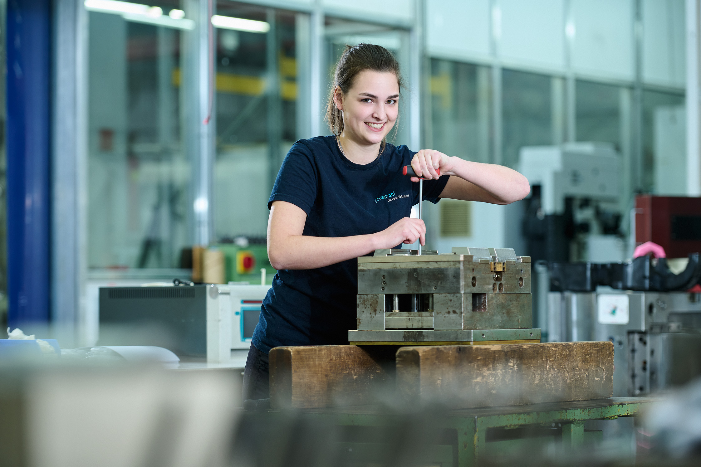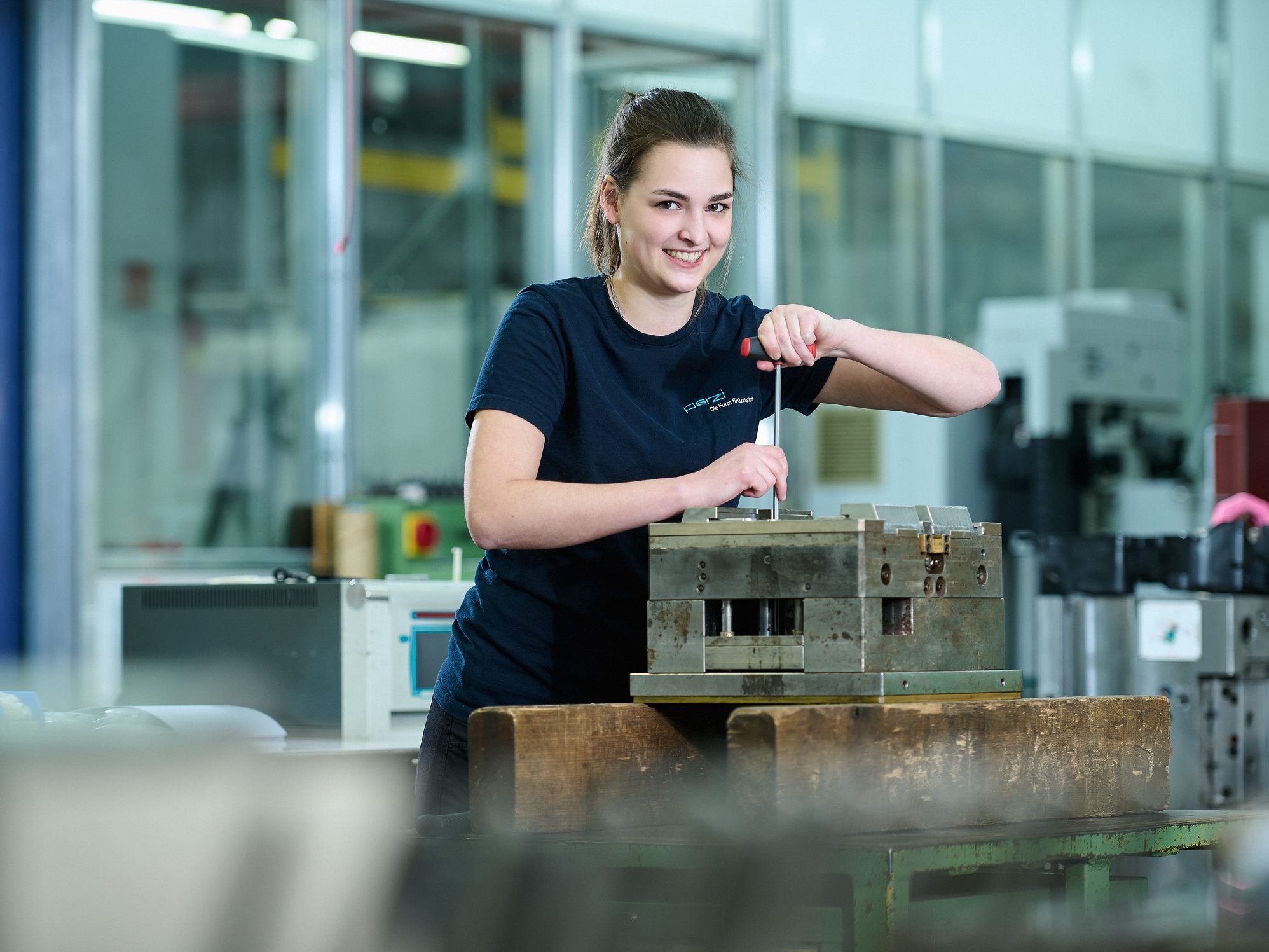 Nina Greber hat bei der Firma Perzi Kunststoff im Industriegebiet Nord die Ausbildung zur Kunststofftechnikerin begonnen. Nach dem Besuch der Pflichtschule hat Nina eine Lehre zur Textiltechnologin abgeschlossen. Um sich weiterzubilden, entschied sie sich für eine zweite Lehrausbildung. Im Berufsalltag ist ihr das abwechslungsreiche Arbeiten wichtig. Als nächstes berufliches Ziel hat sich Nina – die in ihrer Freizeit gerne Yoga macht – den positiven Lehrabschluss gesetzt.