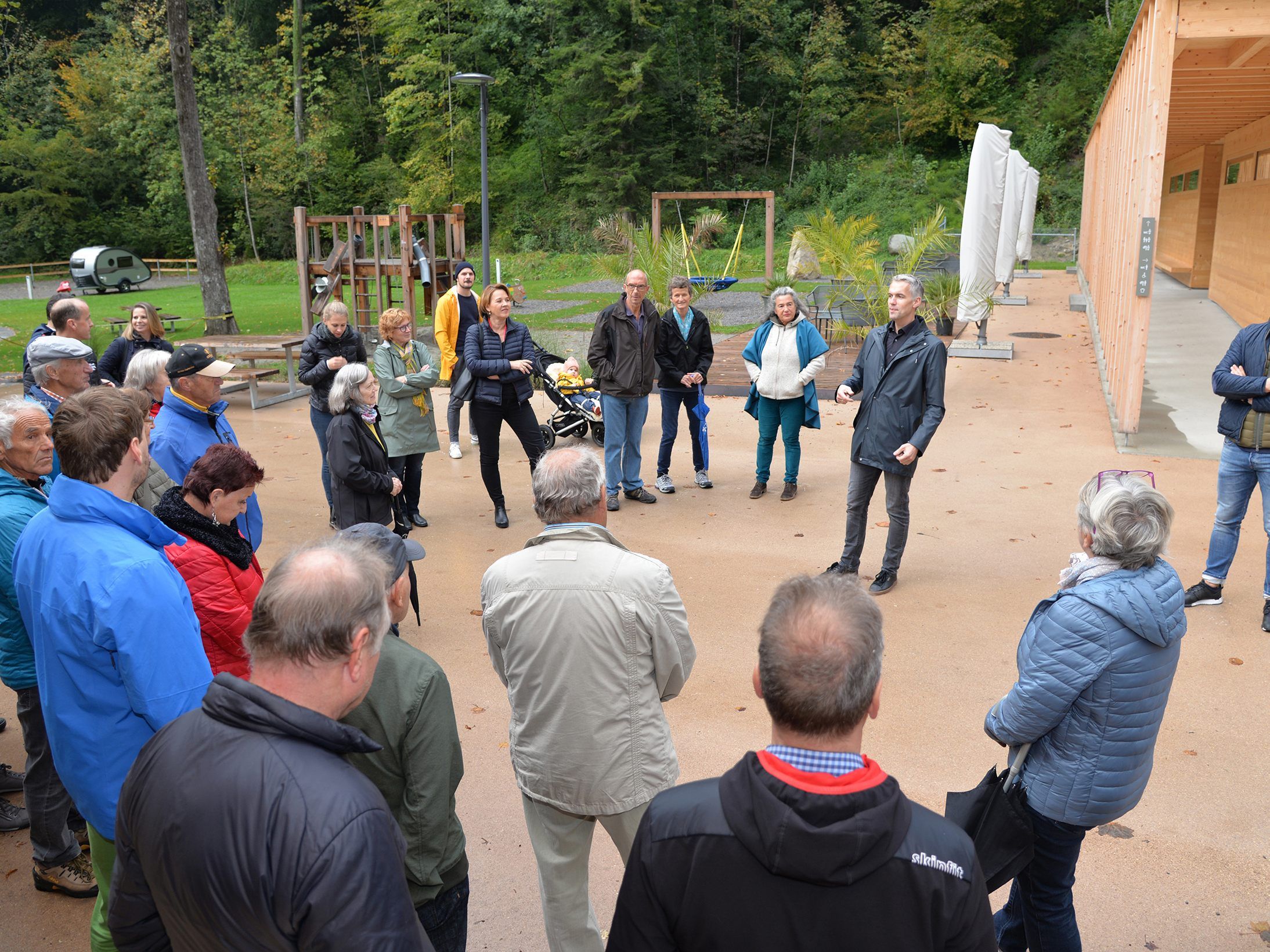 Dornbirn. Viel Neues gab es für die zahlreichen Besucherinnen und Besucher bei „Fritag am füfe“ beim neuen Campingplatz in der Enz zu erfahren: beispielsweise dass innerhalb der ersten drei Monate nach der Eröffnung mehr Gäste verzeichnet werden konnten, als früher während des ganzen Jahres kamen. Aber auch dass die preisverdächtige Architektur fast ausschließlich aus Dornbirner Holz umgesetzt wurde und dass der Dornbirner Campingplatz seit rund 30 Jahren die erste völlig neu gebaute Anlage im Bodenseeraum ist.
