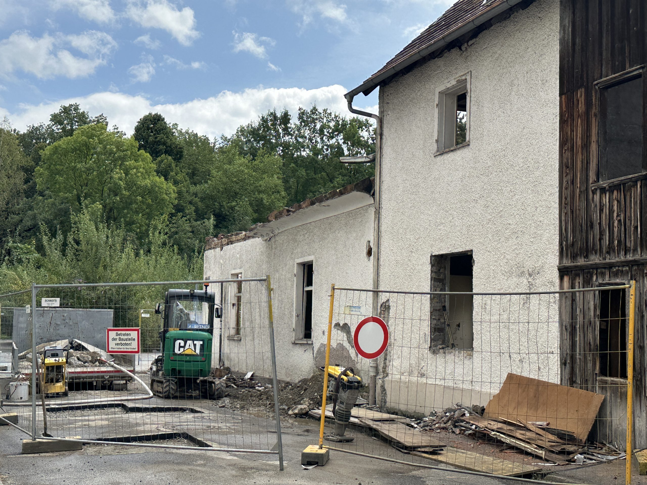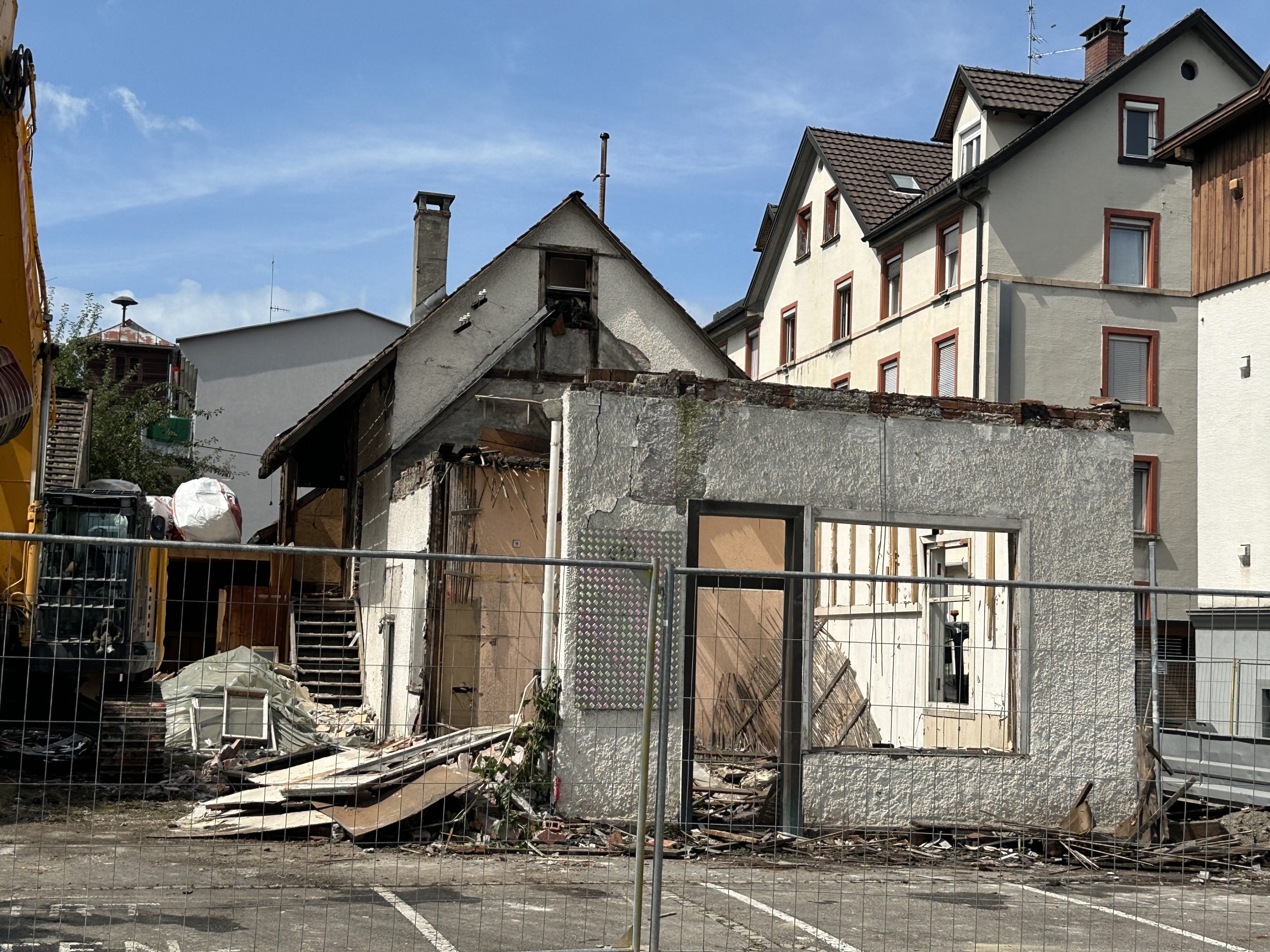 Die Dachziegel beim Gebäude wurden Anfang der Woche bereits abmontiert. Am Mittwoch startete laut Fink der Maschinenabbruch. Beim VOL.AT-Lokalaugenschein waren Bagger und andere Baumaschinen vor Ort mit dem Abbruch beschäftigt. In rund zwei Wochen soll der Abbruch der Gebäude abgeschlossen sein. Für weitere Restarbeiten wird danach circa eine Woche eingerechnet.