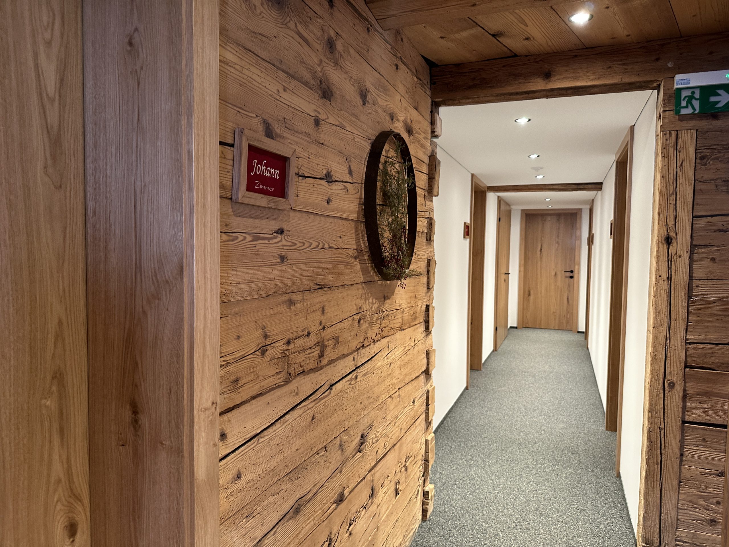 "Was natürlich ganz ein großer Punkt ist, ist die neue Küche", so die Gastgeberin. Sie wurde nicht nur umgebaut und tiefergelegt, sondern auch vergrößert. Ebenfalls komplett neu sind die WC-Anlagen für die Gäste. Auch die sechs Gästezimmer wurden renoviert und neu gestaltet. "Aber alles ist im Inneren des Hauses passiert", betont Moosbrugger. Das alte Holz im Gang und in "Rosa's Stüble" wurde sandgestrahlt und so optisch aufgewertet und aufgehellt. Altes Gebälk aus dem Haus wurde von einem Schreiner behandelt. "Er hat uns die alten Balken aufgetrennt und eine Täfelung draus gemacht", so die Wirtin. So entstanden in einigen Zimmern neue Holz-Rückwände für die Betten.