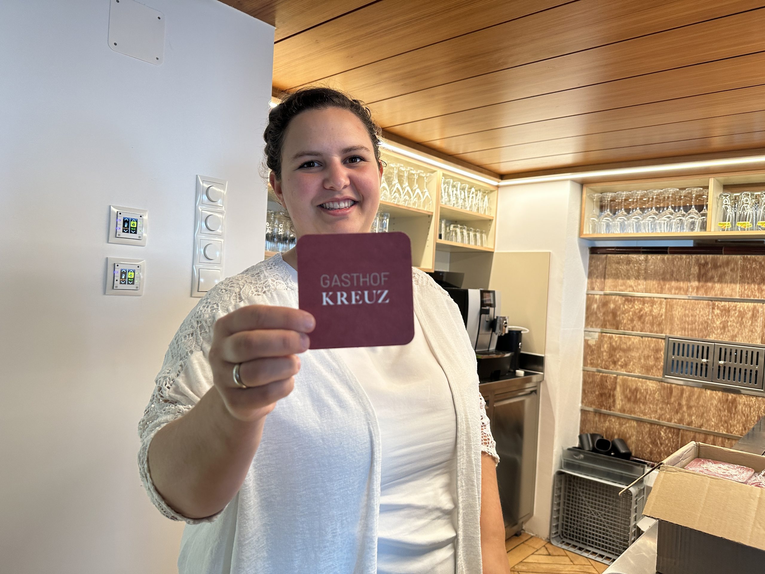 Unterstützt wird die junge Vorarlbergerin von ihrem Mann und den beiden kleinen Töchtern. Ihr Mann sei zwar gelernter Tischler, habe sich aber bei den Umbauarbeiten im Gasthaus als echter Allrounder bewiesen, verrät sie. "Bei den Abbrucharbeiten war er schon vorne mit dabei, genauso wie mein Vater", so die neue Wirtin. Auch bei den Maurerarbeiten habe er mitgeholfen. "Das ist für mich natürlich unglaublich viel wert", verdeutlicht Moosbrugger. Koch Sebastian Baumann verstärkt das Kreuz-Team in der Küche, zudem gibt es mehrere geringfügige Mitarbeiter. Sie selbst sei Chefin, Rezeptionistin – alles in einem: "Ich helfe, wo es' braucht", meint sie.