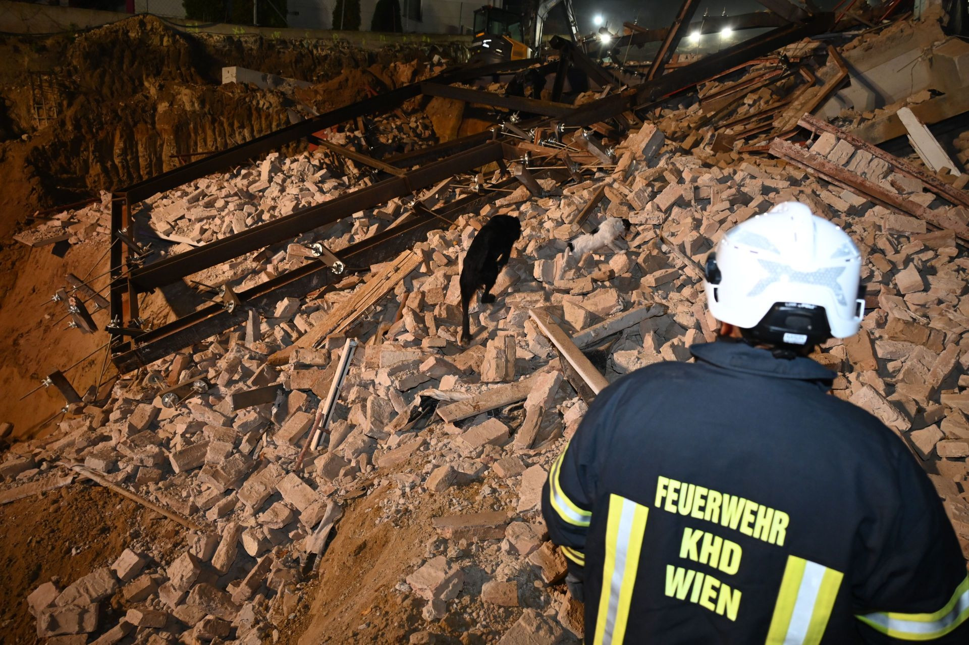 Die Berufsfeuerwehr Wien erkundete die Baustelle und konnte rasch Entwarnung geben: Es wurden keine akut absturzgefährdeten Bereiche festgestellt. Gleichzeitig begann die Suche nach möglichen Verschütteten – auch mithilfe von Rettungshunden, Drohnen und Schallortungstechnik.