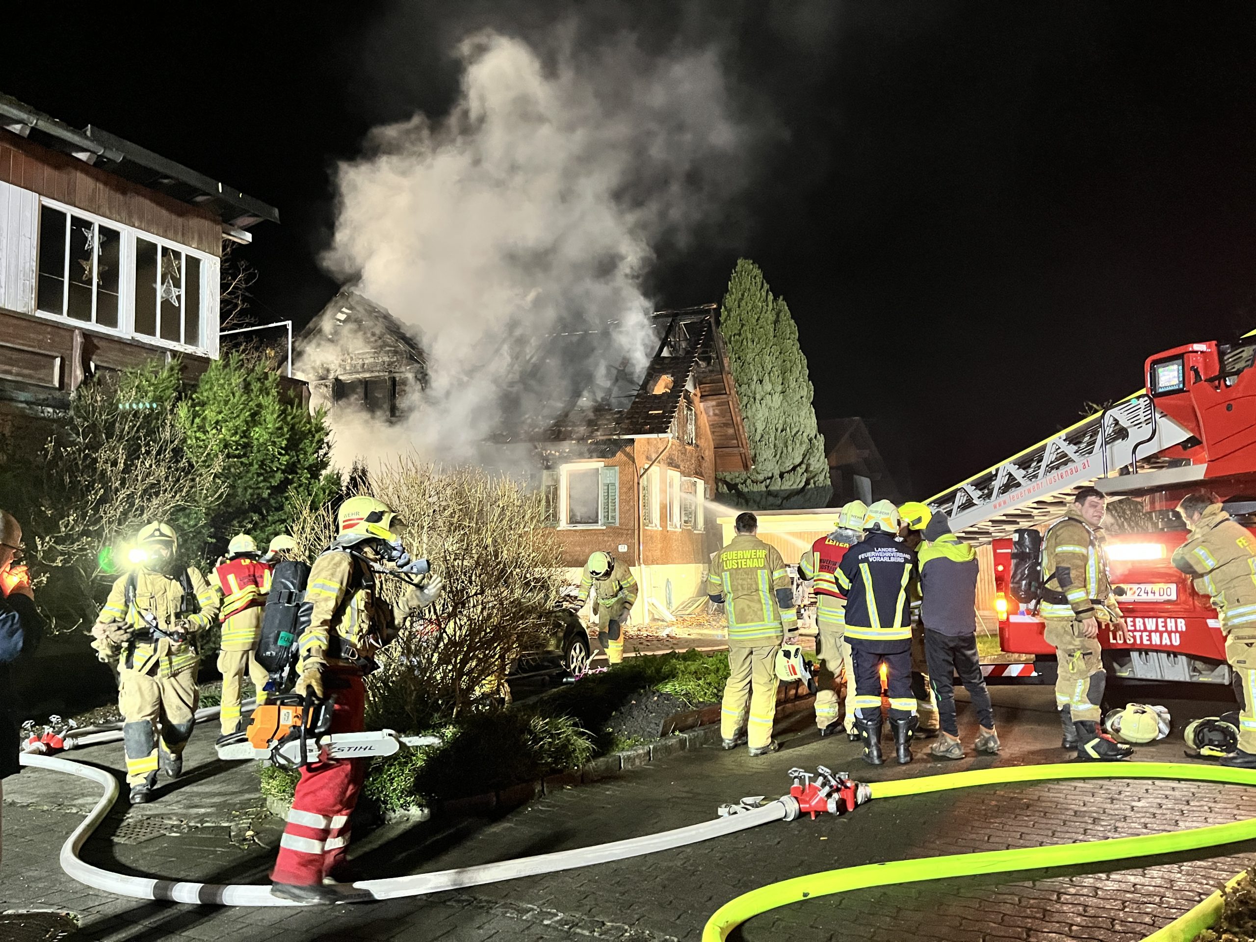 Gegen 1.30 Uhr morgens stellte ein 30-jähriger Hausbewohner fest, dass der Hausflur des Hauses in der Lustenauer Staldenstraße bereits in Vollbrand war. Zu diesem Zeitpunkt befanden sich im Einfamilienhaus drei Personen, welche alle das Brandobjekt selbständig verlassen konnten. Sie wurden durch den Rettungsdienst erstversorgt und ins KH Dornbirn transportiert. Alle drei Personen blieben unverletzt.