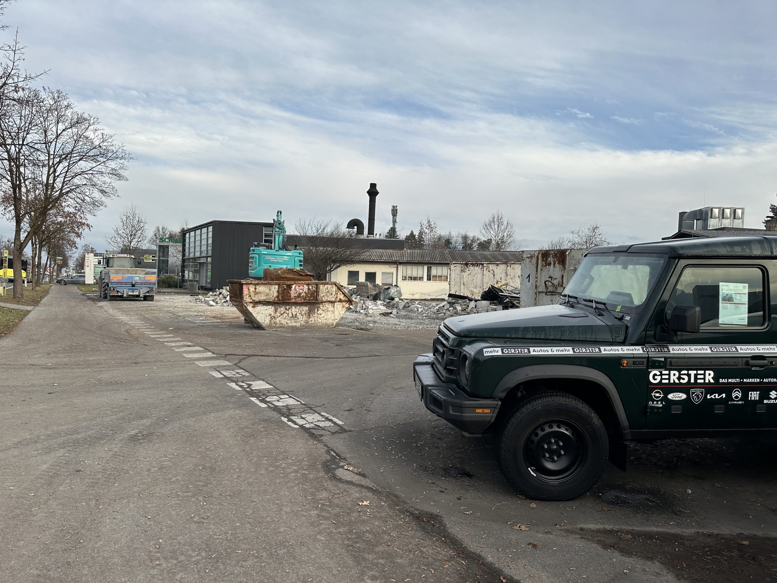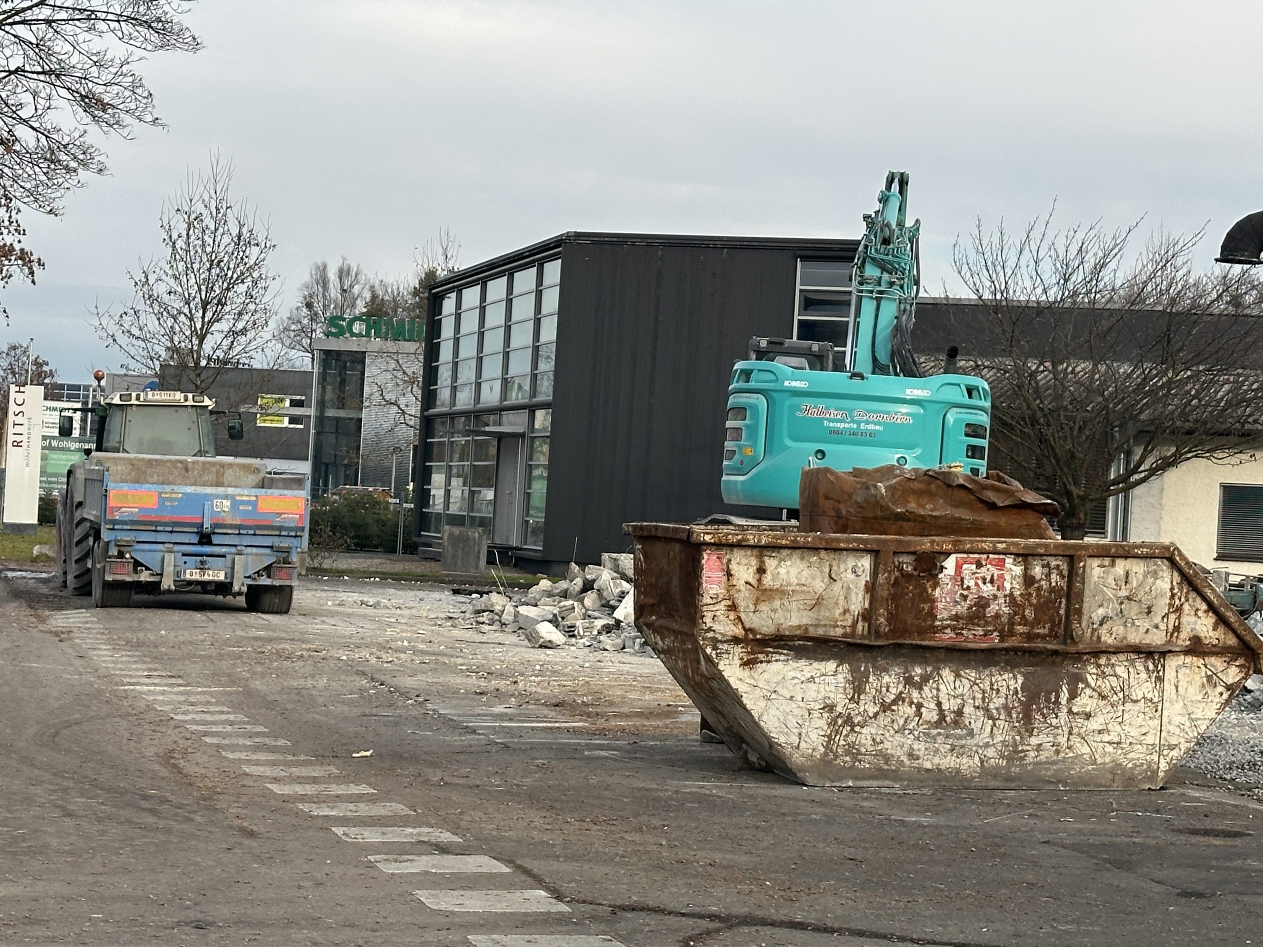 Beim Gebäude handelt es sich um das Nutzfahrzeugcenter, das bisher für den Verkauf von Jung- und Gebrauchtwagen genutzt wurde. Das Bauwerk wurde in den vergangenen Tagen vollständig abgetragen. Der Bagger ist aktuell noch voll im Einsatz und zieht die Blicke der Passanten und Autofahrer auf sich. Bauschutt und Container bestimmen das aktuelle Bild.