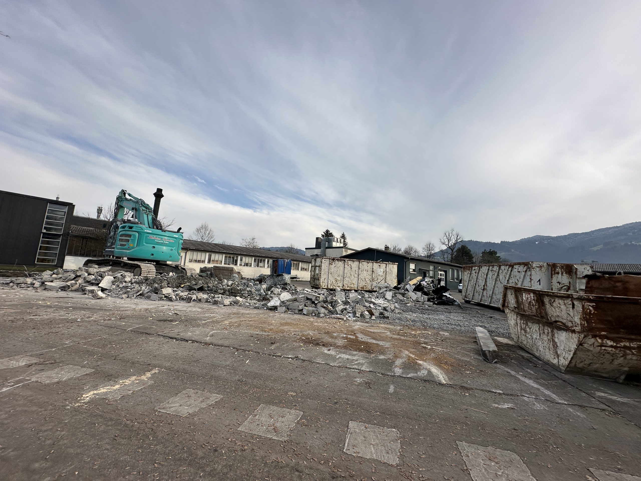 Wer im Schwefel unterwegs ist, dem dürfte der große, türkise Bagger schon aufgefallen sein. Zudem klafft auf dem Firmengelände des Autohauses Gerster nun eine Lücke: Ein Gebäude im vorderen Bereich wurde abgerissen, wie ein VOL.AT-Lokalaugenschein zeigt.