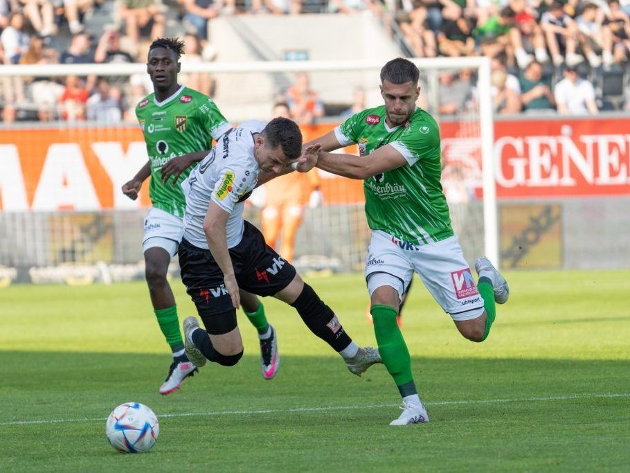 13.05.2023 Pfiffe von den Ränge und wütige Fans nach der 0:1-Heimniederlage gegen Hartberg. Est Atdhe Nuhiu schaffte es, die Anhänger zu beruhigen. Allein die spielerische Unterlegenheit gegen die Steirer muss zum denken geben.