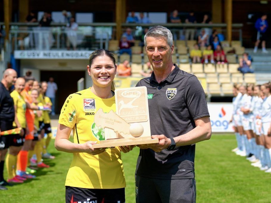 29.05.2023 Ehemalige Mehrerau-Absolventin als Österreichs Spielerin der Saison ausgezeichnet. Auf Rang zwei landete mit Linda Natter eine weitere Spielerin der SPG SCR Altach/FFC Vorderland.
