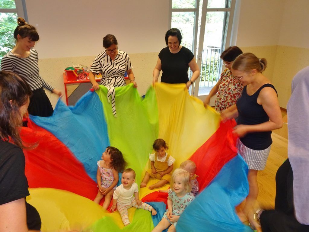 1.07.2024 Maja Pollak bringt in der Purzelbaumgruppe Eltern und Kinder zusammen.