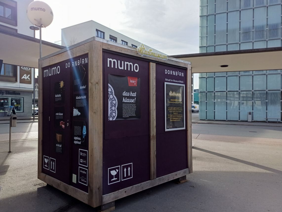 16.02.2024 Seit heute findet man auf dem Bahnhofsvorplatz in Dornbirn das mobile Museum "mumo".