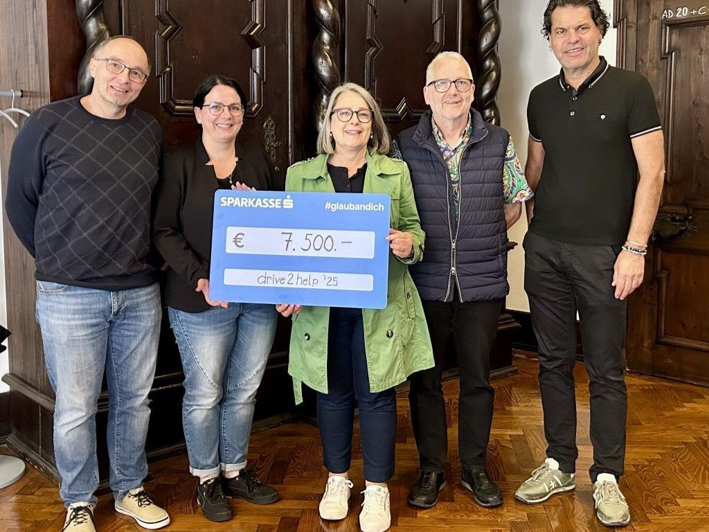 12.09.2025 Scheckübergabe im Rathaus: Erlös der Benefizfahrt kommt Menschen in Not zugute.