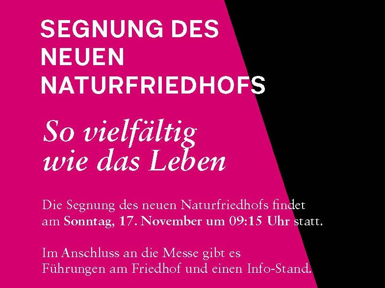 12.11.2024 Am Sonntag, den 17. November 2024, wird Pfarrer Generalvikar Dr. Hubert Lenz im Anschluss an die Messfeier um 09:15 Uhr den neu angelegten Bestattungsort segnen und seiner Bestimmung übergeben.