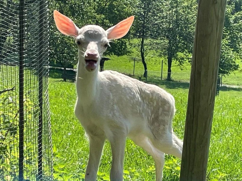 Weißes Rotwild-Kälbchen als neuer Wildpark-Star