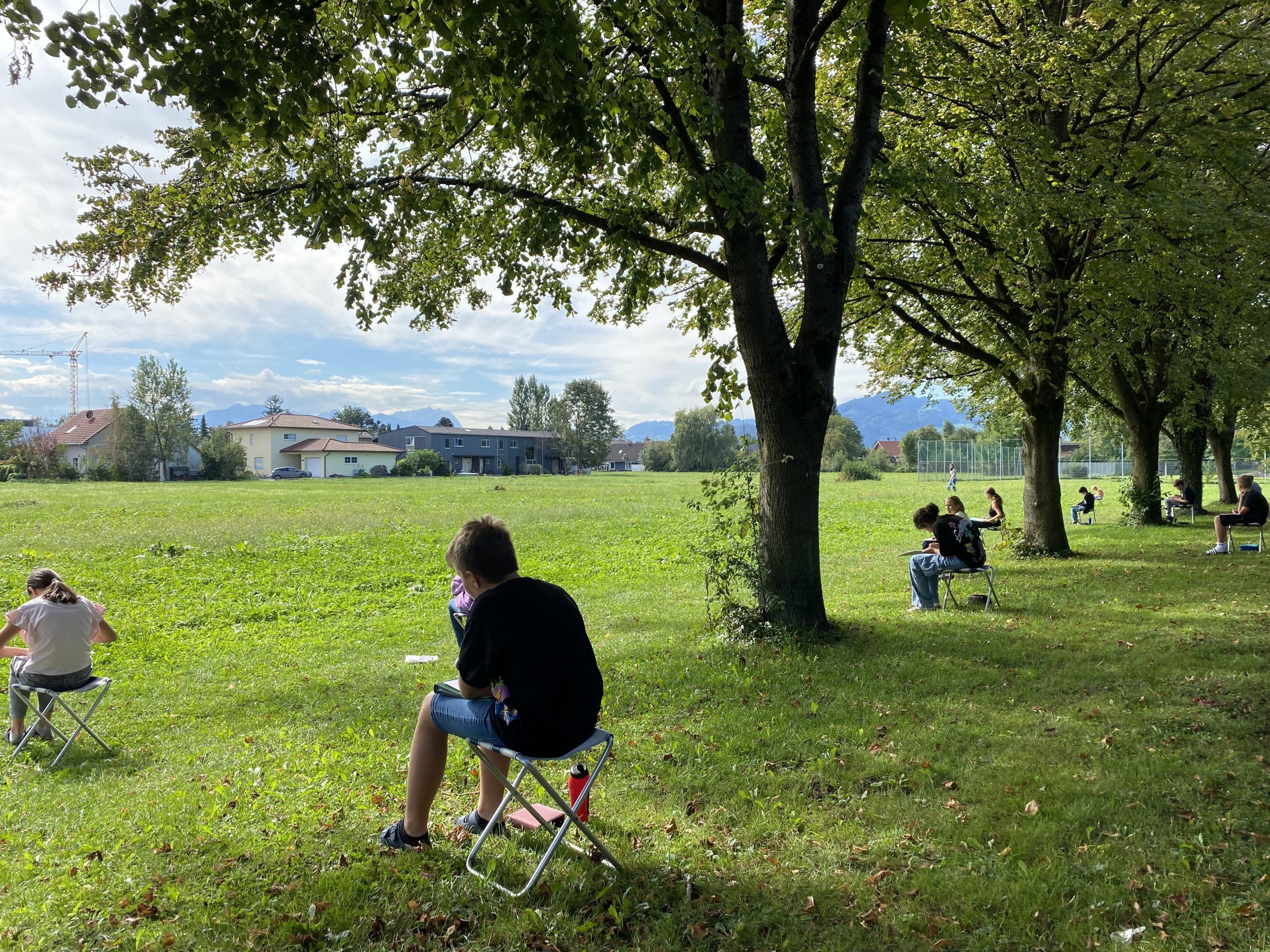 6.10.2023 Schüler:innen des BG Lustenau versuchen sich an der Freilichtmalerei.