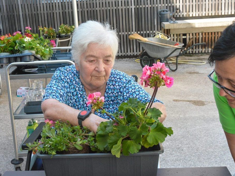 22.06.2023 Im Seniorenhaus Schützengarten durften Bewohnerinnen und Bewohner ihre eigenen Blumenkistchen pflanzen.
