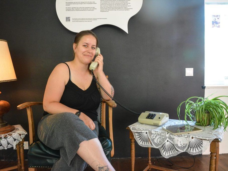 23.06.2023 Die FH-Studentin Sarah Hämmerle (30) weckt mit einem umgebauten Telefon das Interesse am Lustenauer Dialekt.